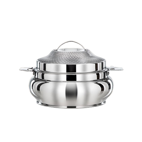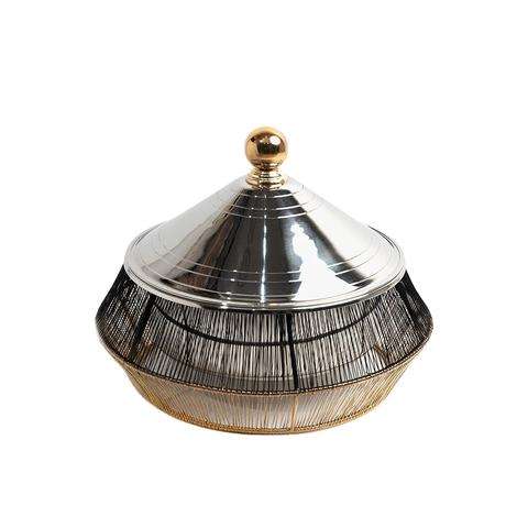 เซิร์ฟเวอร์อาหารสแตนเลสสตีลที่สวยงามอย่างยั่งยืนพร้อมฝาปิดดีไซน์เนอร์รูปทรงโค้งมน