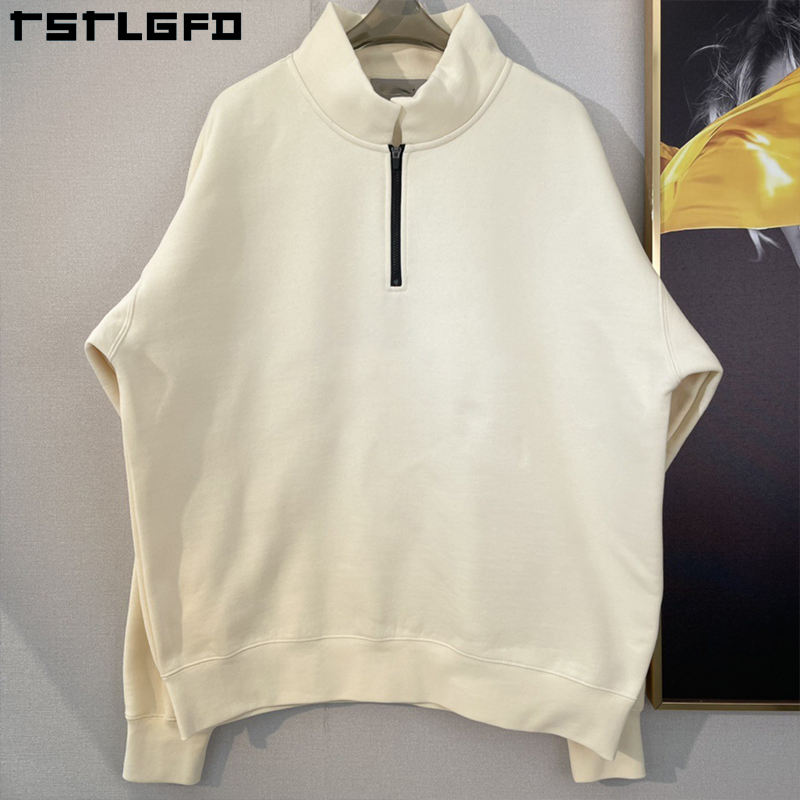 Custom Sustainable 100% Cotton Pullover Hoodie for Men Quality Oversized Mock Neck Half Zip Sweatshirt for Winter Digital