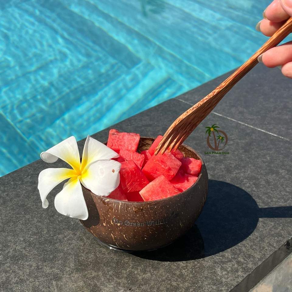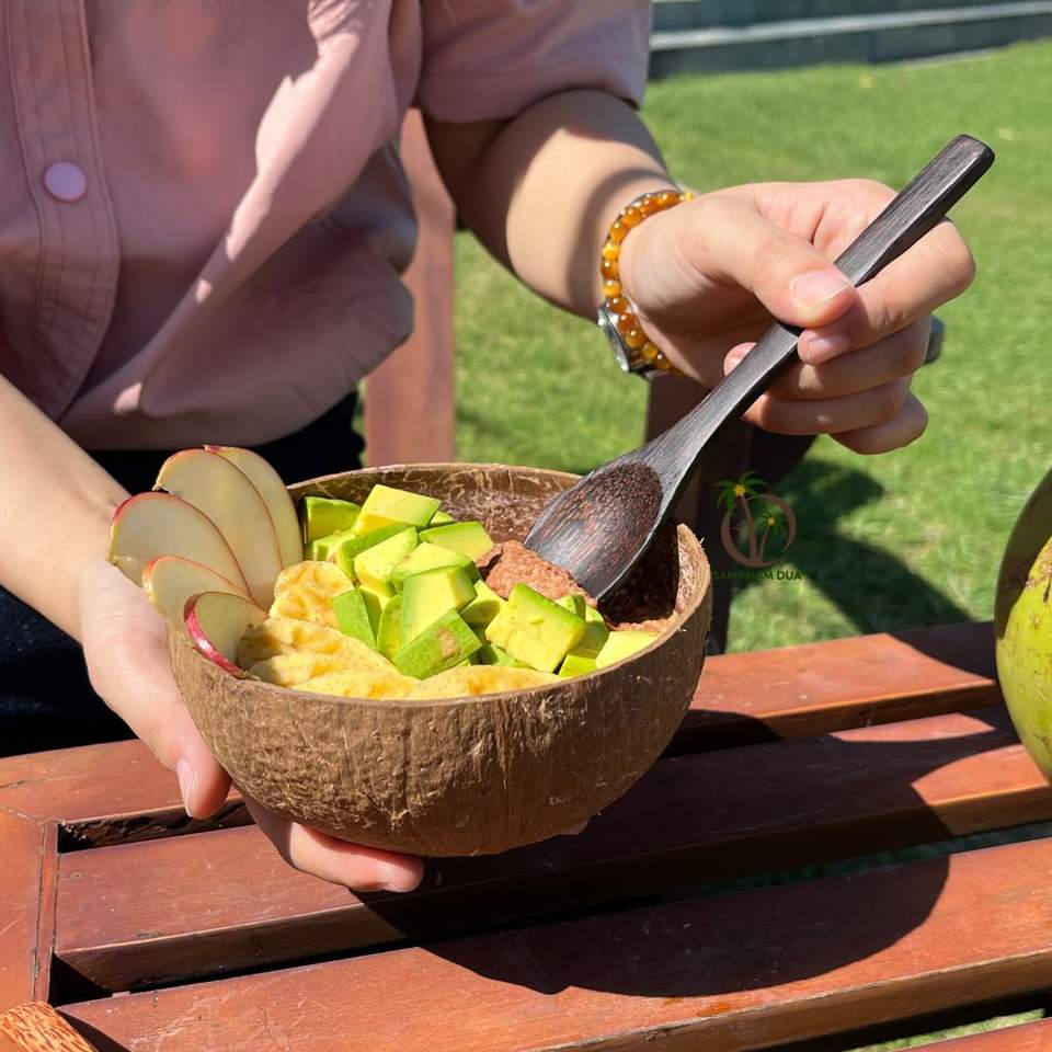 Sustainable Coconut Shell Bowl 13-14cm Combo with Wooden Spoon 100% Natural Zero Waste Plastic Free Tableware/Bulk Factory Price