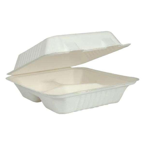 ภาชนะแบบฝาพับที่เป็นมิตรต่อสิ่งแวดล้อมอย่างยั่งยืนสำหรับจัดเลี้ยงกล่องอาหารแบบฝาพับธรรมชาติย่อยสลายได้สำหรับบรรจุภัณฑ์อาหารจานด่วน