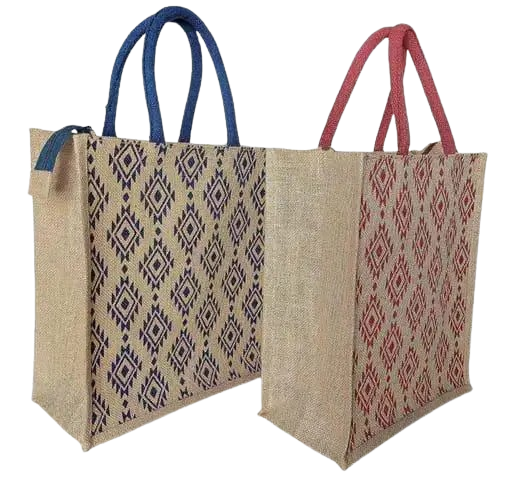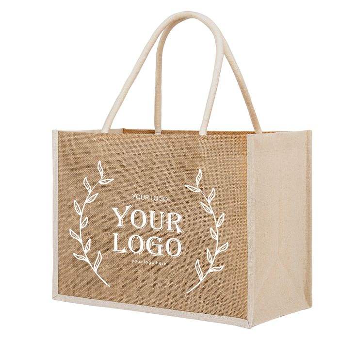 กระเป๋าโท้ทผ้ากระสอบเคลือบลามิเนตแบบยั่งยืน รีไซเคิลได้ พิมพ์โลโก้ได้ตามต้องการ พร้อมหูหิ้วสาย PP ยี่ห้อ CENPLAS ไม่มีซิปปิด ขายส่ง