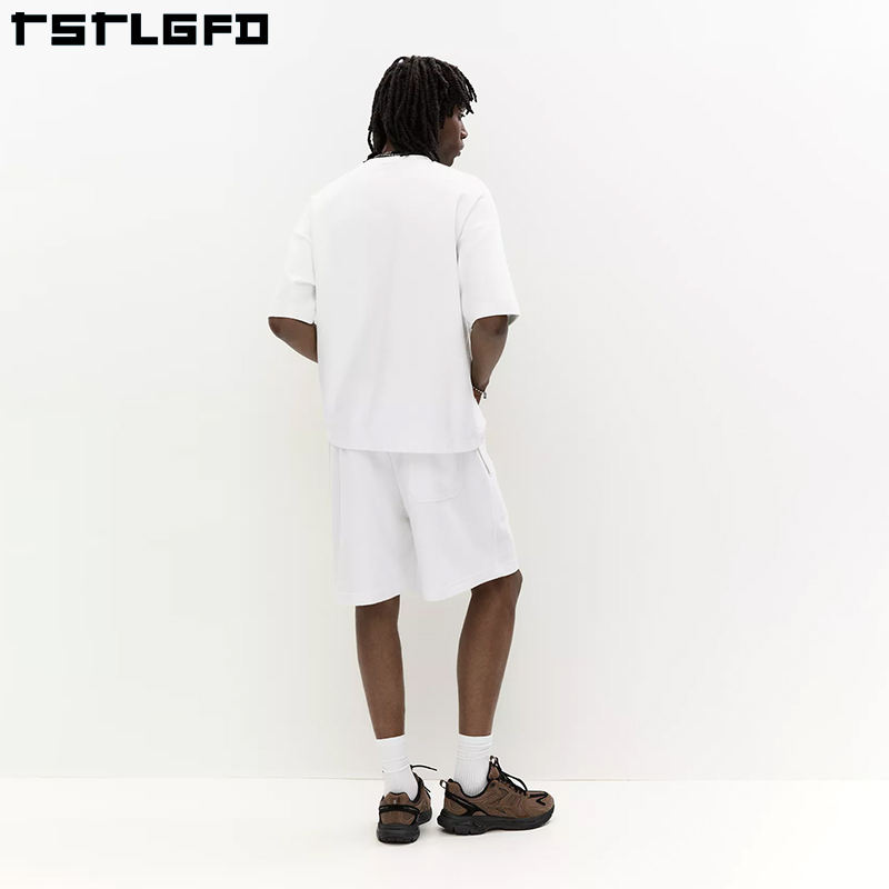 เซ็ตเสื้อยืดและกางเกงขาสั้นผ้าฝ้ายออร์แกนิคสำหรับผู้ชายเสื้อยืดคอกลมเปิดไหล่สำหรับผู้ชายเสื้อยืดคอกลมไซส์ใหญ่พิเศษเป็นมิตรต่อสิ่งแวดล้อม