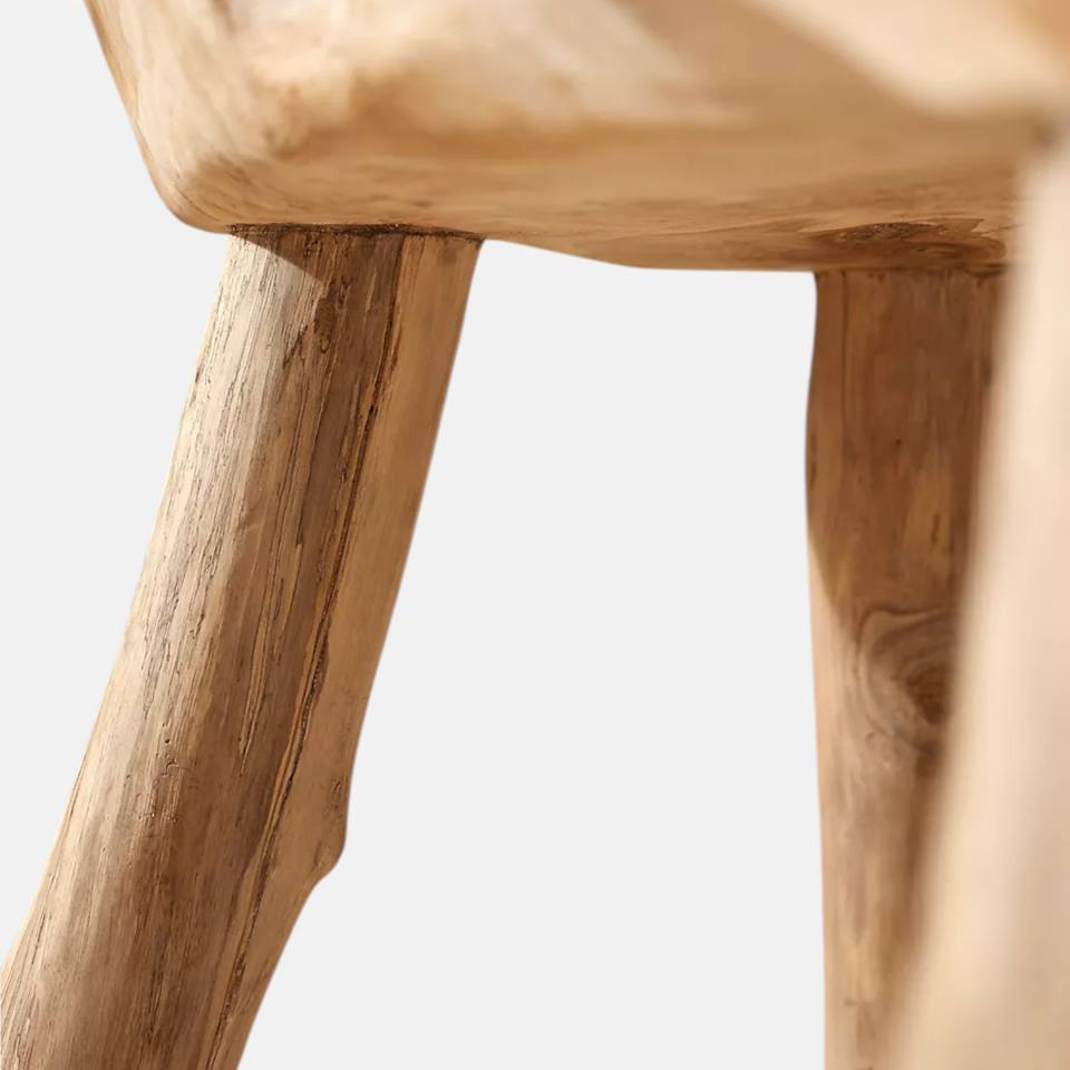 ม้านั่งไม้สักแท้ รากไม้ แกะสลักด้วยมือ ขอบธรรมชาติ เฟอร์นิเจอร์สวน