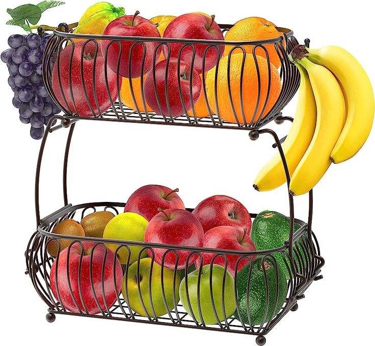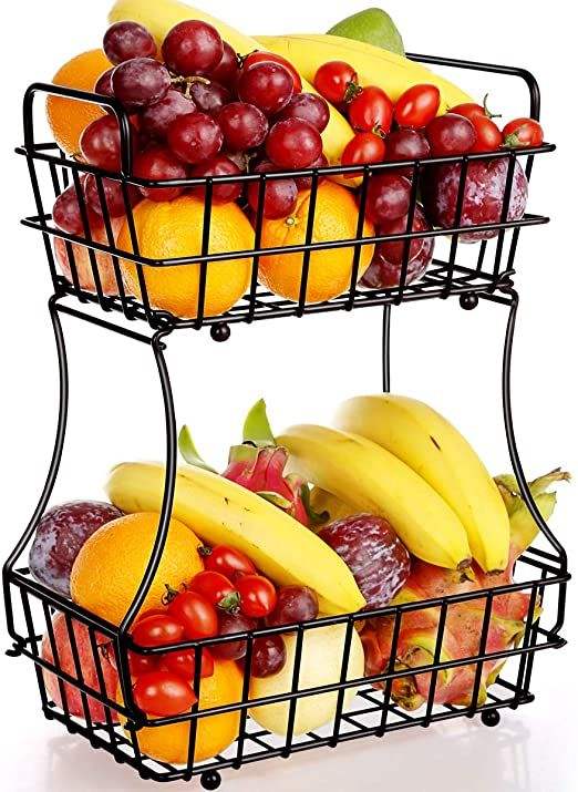 ตะกร้าผลไม้แบบยั่งยืนสองชั้น ตะกร้าเก็บผักแบบมีโครงลวด ตะกร้าโลหะทำมือ สไตล์โมเดิร์น