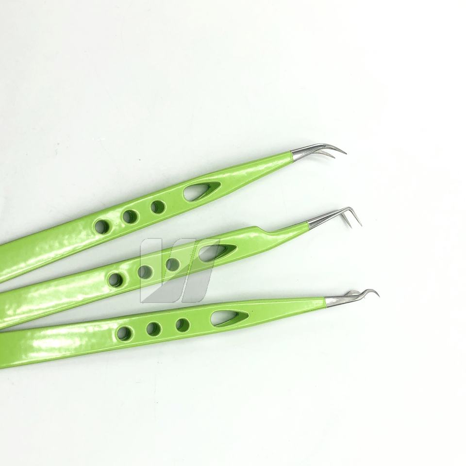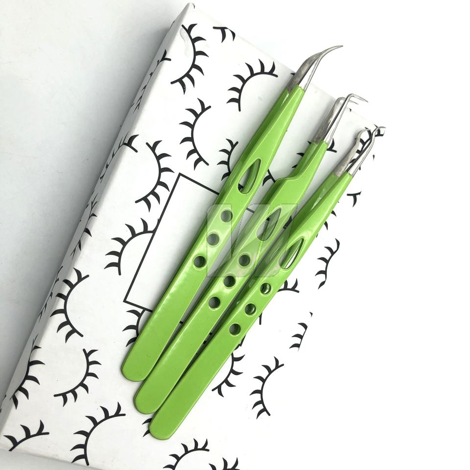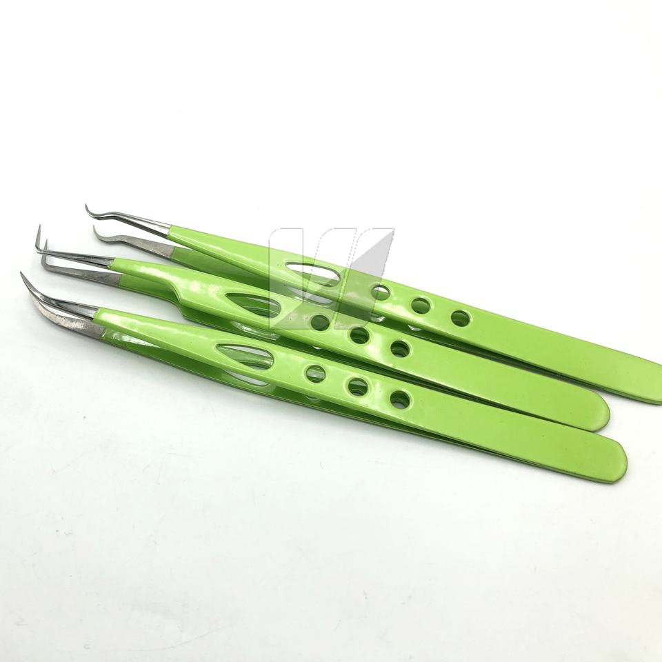 แหนบต่อขนตาสแตนเลสญี่ปุ่นคุณภาพสูง ปลายแหลม สีเขียวรักษ์โลก รับทำโลโก้ตามสั่ง ใช้งานได้หลากหลาย