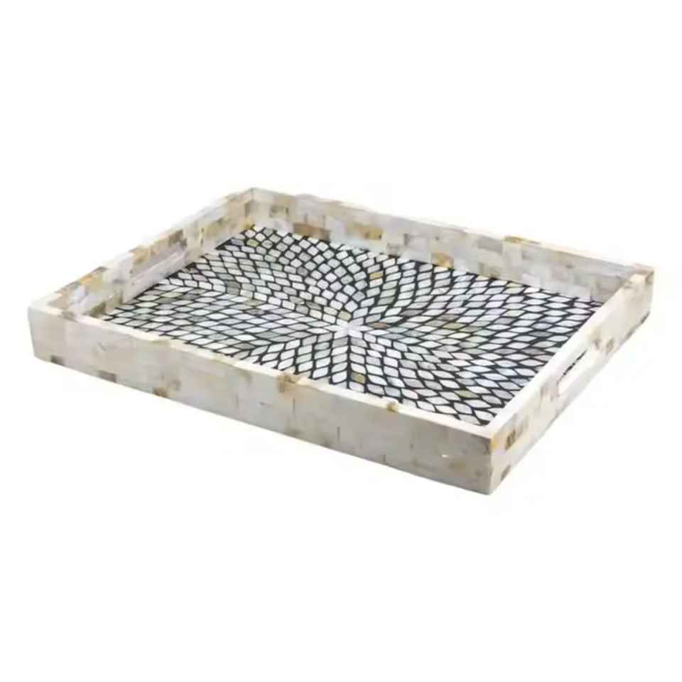 ถาดเสิร์ฟงานฝีมือทำจากเรซิ่นและมุกฝังลายอย่างยั่งยืน สำหรับงานแต่งงาน รอมฎอน อีด งานเฉลิมฉลอง รูปทรงสี่เหลี่ยมผืนผ้า สำหรับวางบนโต๊ะ