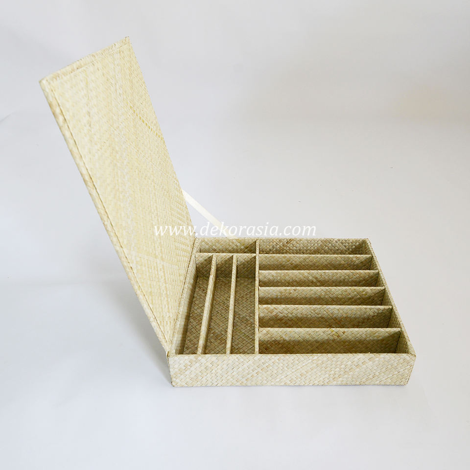 กล่องสานแฮนด์เมดแบบยั่งยืนพร้อมฝาปิดกล่องเก็บใบเตยสำหรับบ้านโรงแรมหรือบรรจุภัณฑ์ของขวัญ