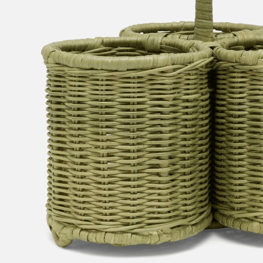 ตะกร้าเก็บไวน์หวายสานมือสีเขียวแบบยั่งยืน สำหรับใส่ขวดไวน์ได้สองขวด ผลิตด้วยมือ เหมาะสำหรับผู้ซื้อขายส่งจำนวนมาก