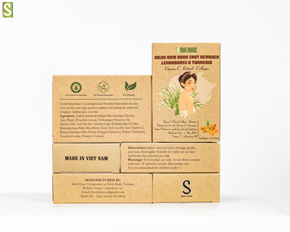 โซเดียม Palmate, โซเดียมปาล์ม kernelate, กลีเซอรีน, น้ำ (น้ำ), โพแทสเซียม cymbopogon flexuosus, ซูโครส, กรดซิตริก, เกลือทะเล, curclonga (ขมิ้น) ผงราก, butyrospermum parkii (เชีย) เนย, กรด Kojic, กรดแอสคอร์บิก (วิตามินซี), เรติน, โปรตีนจากข้าวไฮโดรไลซ์ (คอลลาเจนทางเลือก), โซเดียม Hyaluronate, โทโคฟีรอลอะซิเตท (วิตามินอีอะซิเตท)ส่วนผสม