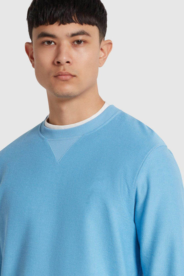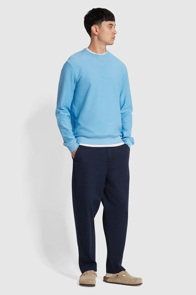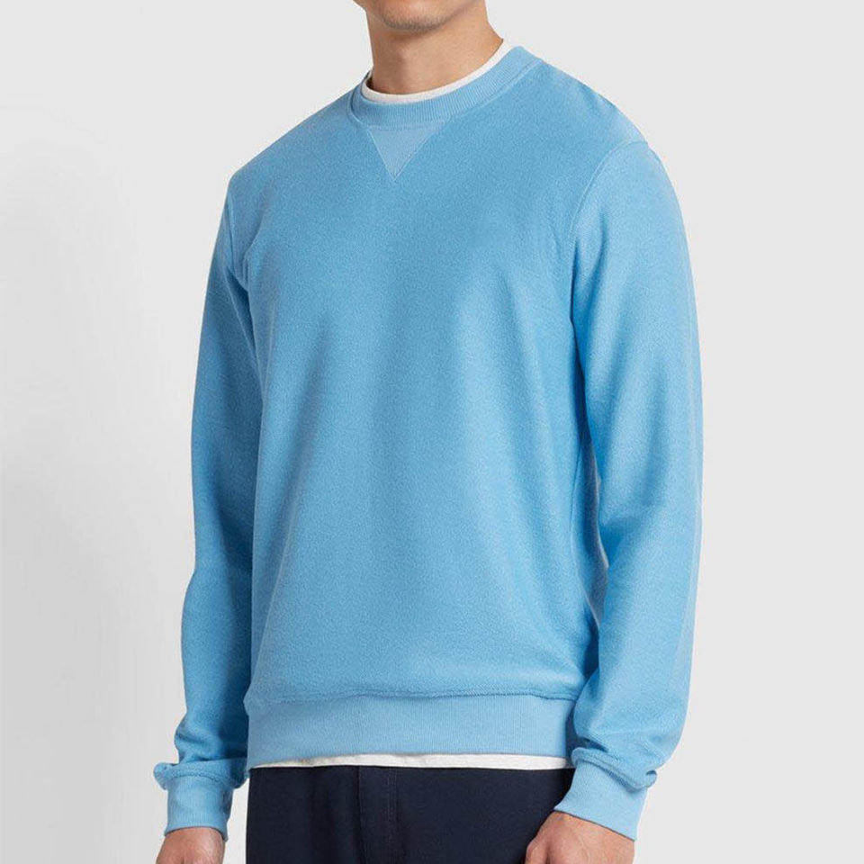 เสื้อสเวตเชิ้ตคอกลมทรงโอเวอร์ไซส์สีน้ำเงิน ผ้าทวิลล์คุณภาพสูง ยั่งยืน ทนทาน สำหรับผู้ชาย ผลิตจากผ้าฝ้ายผสม รับผลิตตามสั่ง ขายส่ง