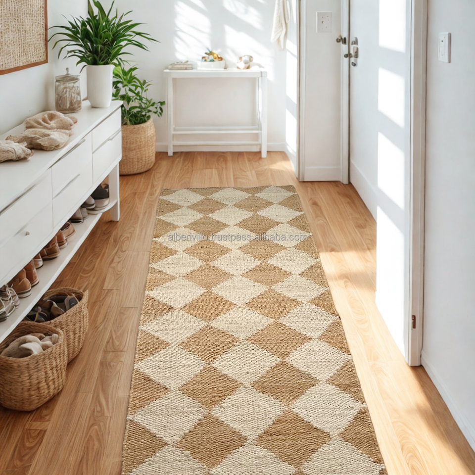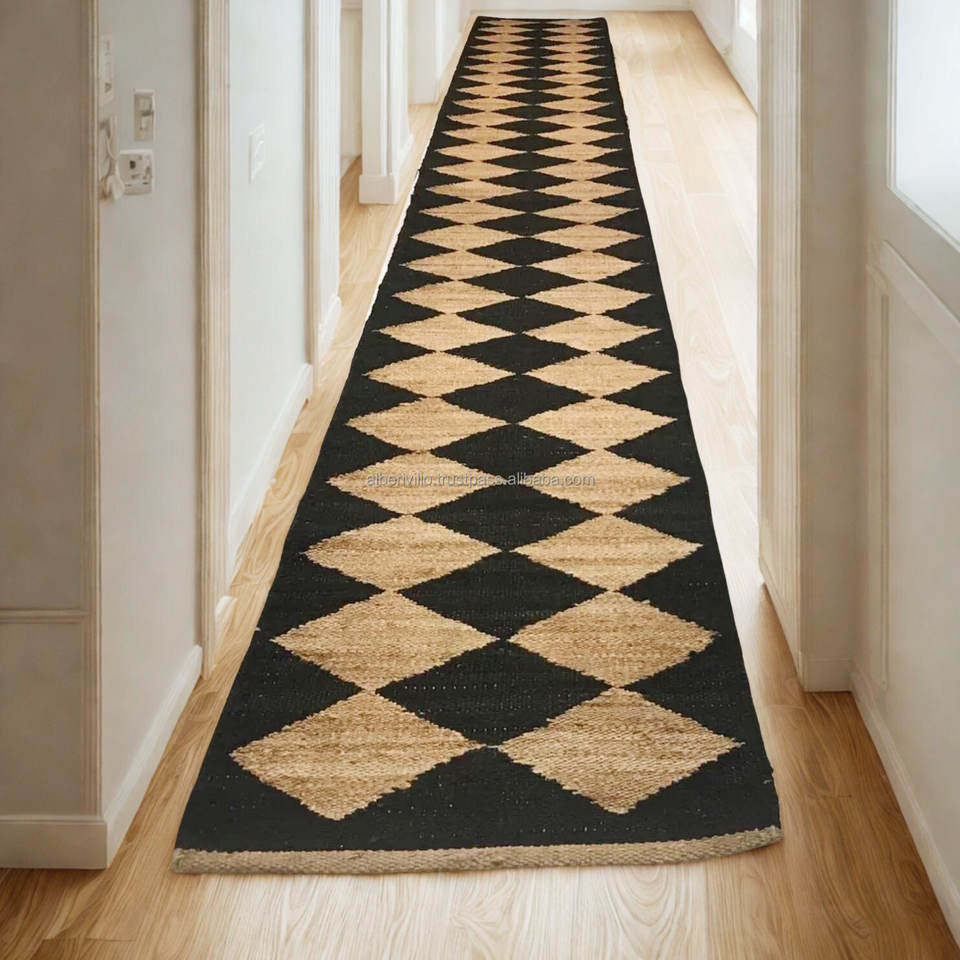 พรมปอกระเจาแบบยั่งยืนพรมงานฝีมือพร้อมลวดลายวินเทจสำหรับนำเข้าของตกแต่งบ้าน