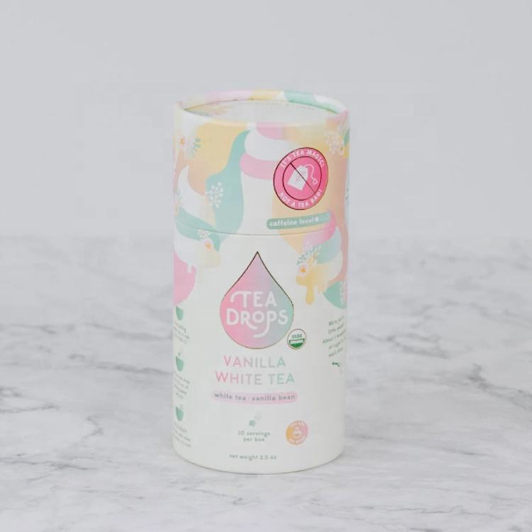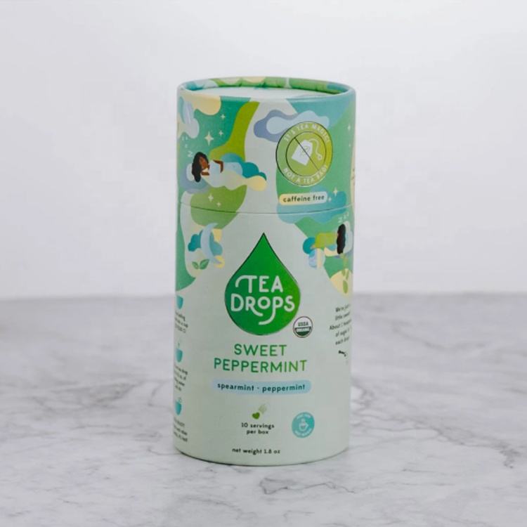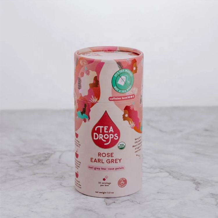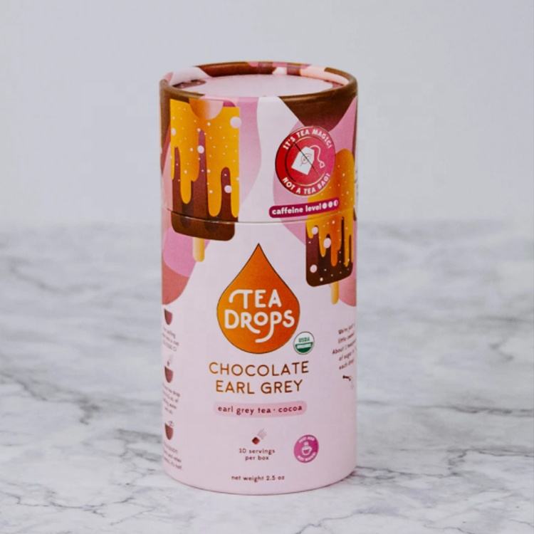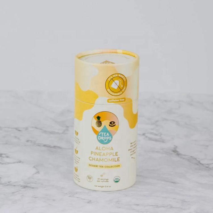 บรรจุภัณฑ์กล่องกระดาษคราฟท์ทรงกระบอกแบบยั่งยืนสำหรับชาใบชาสมุนไพรชาผลไม้ชาดอกไม้