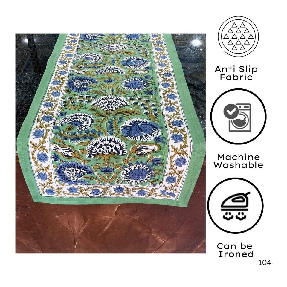 ผ้าปูโต๊ะผ้าฝ้ายหรูหรายั่งยืนสง่างามลายใบไม้สีเขียวพื้นเมืองพิมพ์ด้วยมือสำหรับใช้ในบ้าน