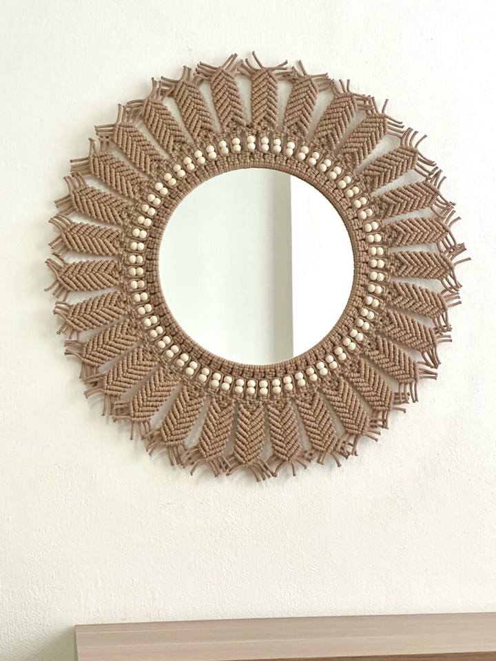 กระจกติดผนัง macrame ที่ยั่งยืนตกแต่งบ้านด้วยการตกแต่งที่ดูเป็นธรรมชาติดีไซน์สร้างสรรค์