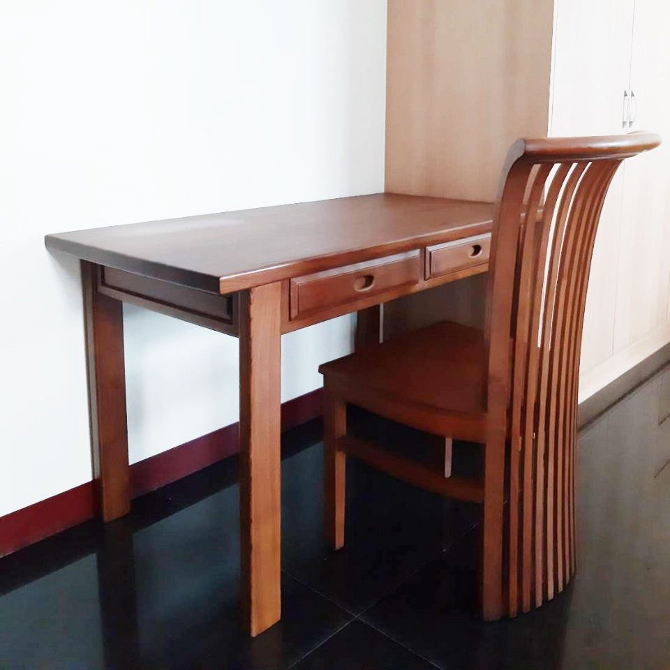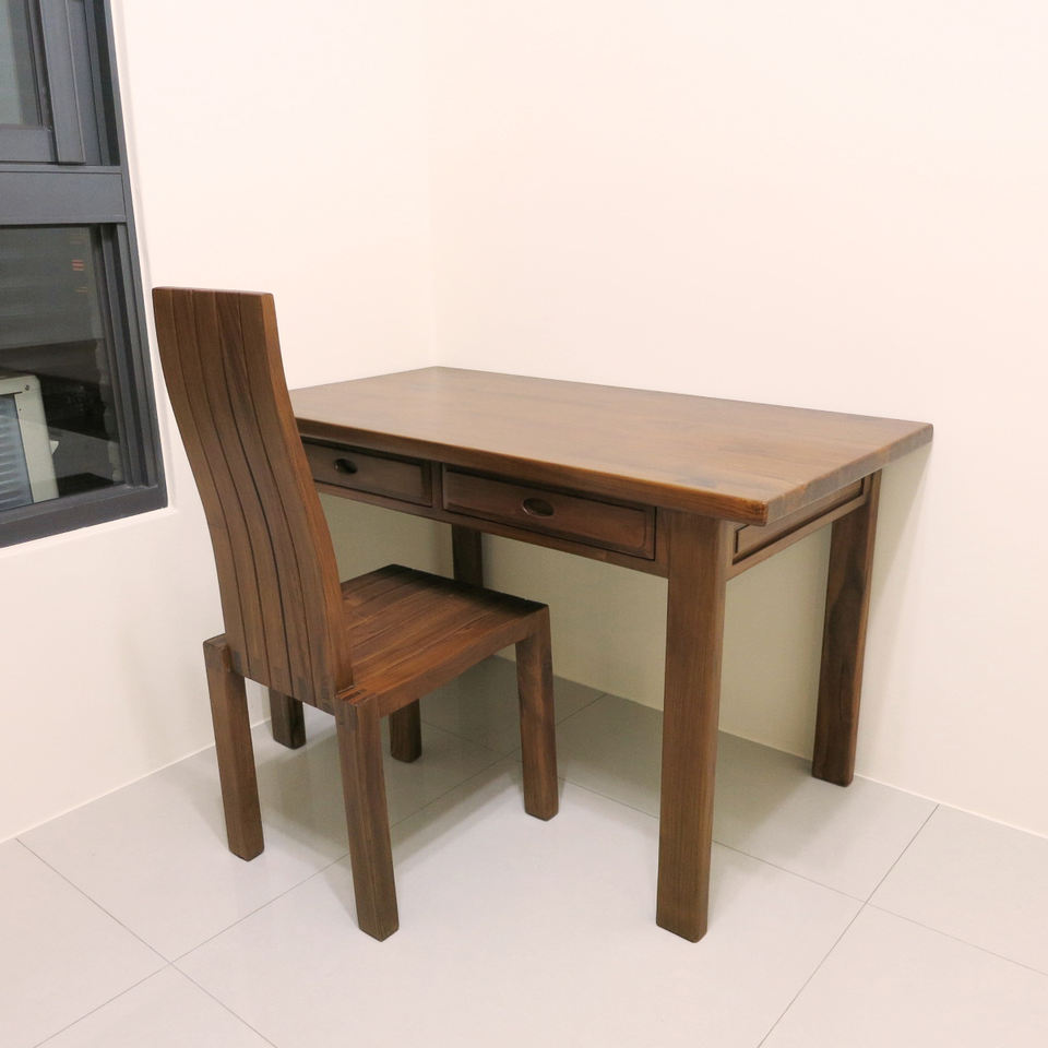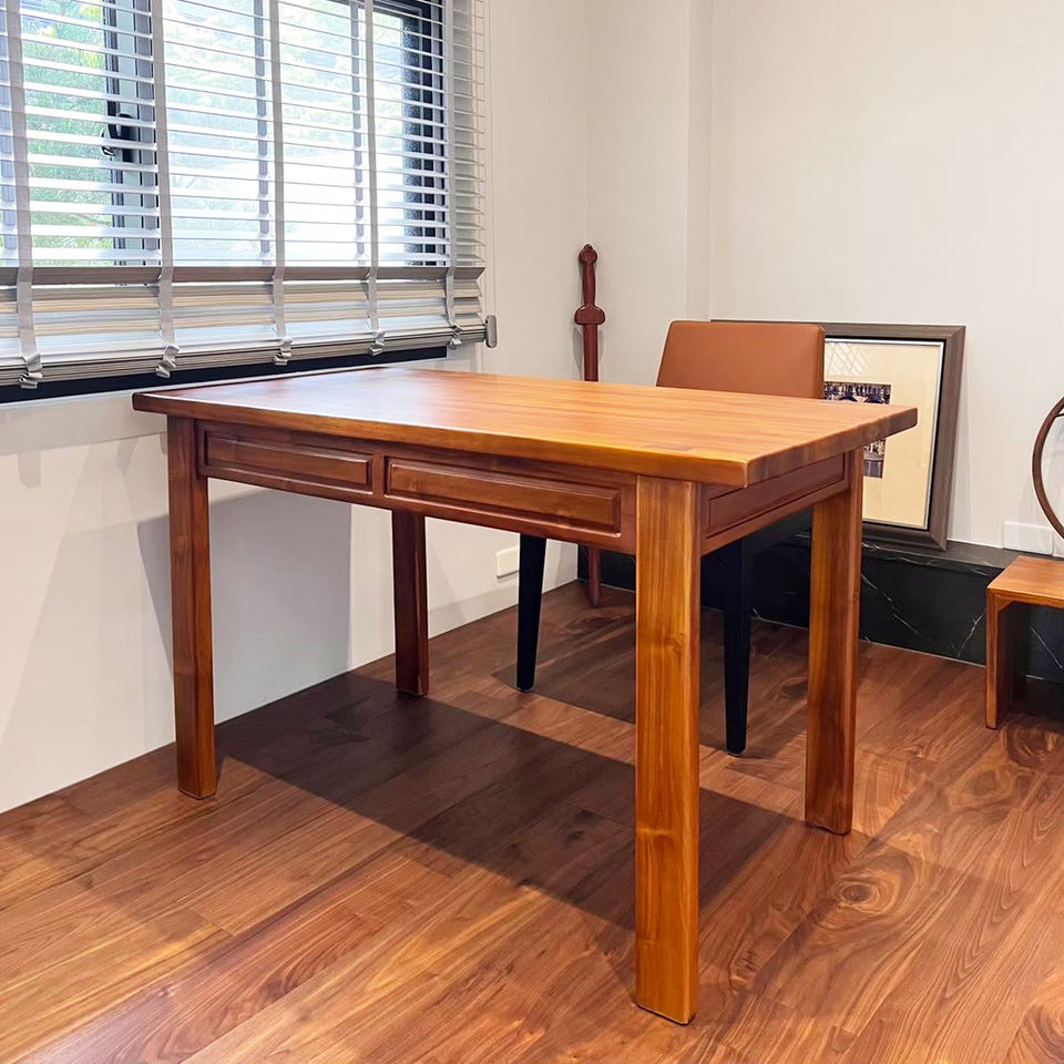 โต๊ะคอมพิวเตอร์ไม้สักโบราณสไตล์มิดเซ็นจูรี่โมเดิร์นแบบโมดูลาร์ที่ยั่งยืนได้ 2 ลิ้นชัก แข็งแรง ทนทาน ไม้สักอินโดนีเซียแท้
