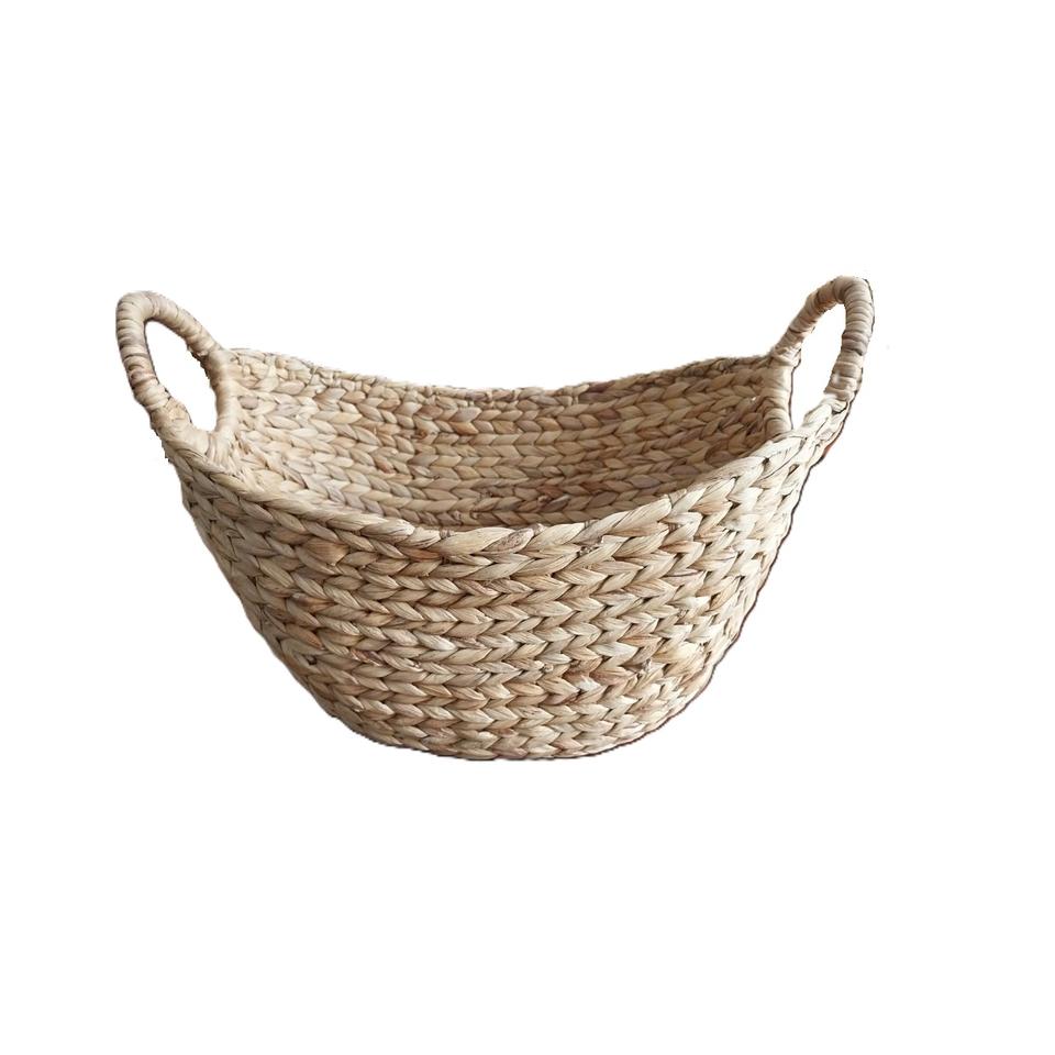 ตะกร้าใส่น้ำผักตบชวาสานอเนกประสงค์สีธรรมชาติแบบยั่งยืนตะกร้าเรือทรงวงรีสำหรับใส่เครื่องดื่มอาหารผลไม้
