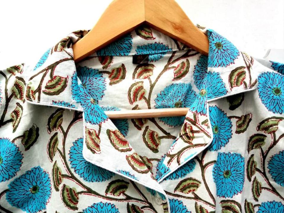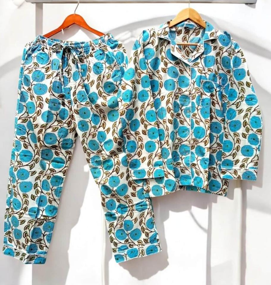 ชุดนอนผ้าฝ้ายออร์แกนิคพิมพ์ลายดอกไม้ 2 ชิ้น สำหรับผู้หญิง เป็นมิตรกับสิ่งแวดล้อม ระบายอากาศได้ดี แขนยาว เนื้อผ้านุ่ม