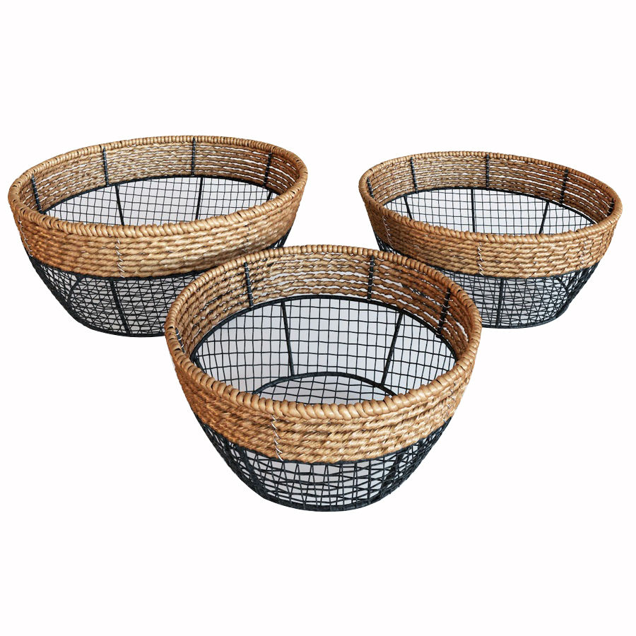 ตะกร้าผ้าไม้ไผ่คุณภาพดี ทนทาน พร้อมหูหิ้วเชือก ชุดสามใบ สำหรับเก็บเสื้อผ้าทุกฤดู คุณภาพระดับมาตรฐาน