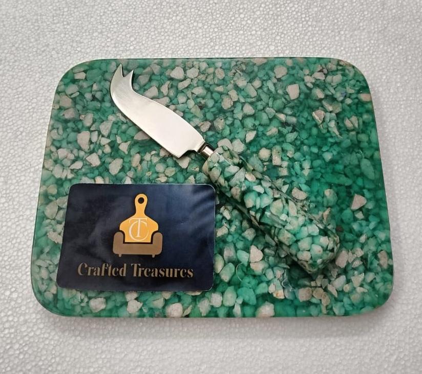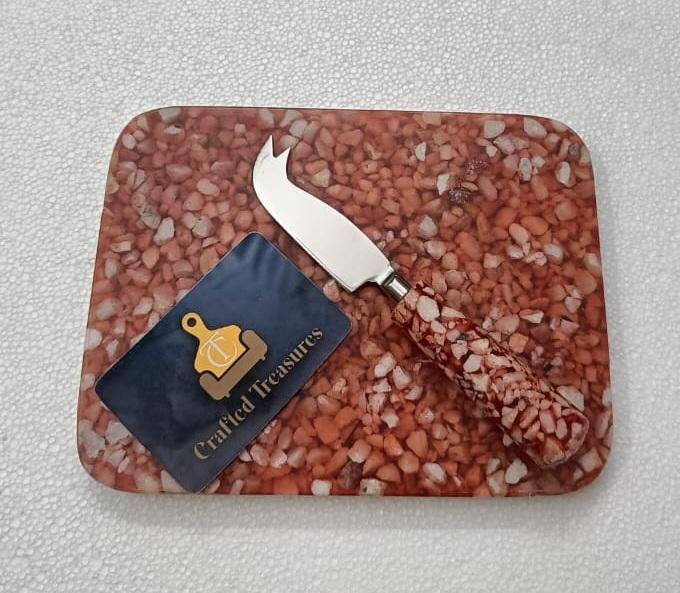 เขียงชีสคุณภาพดีแบบยั่งยืน พร้อมชุดมีดเนย ดีไซน์เรซิ่นและหินฝัง สำหรับหั่นและเสิร์ฟชาร์กูเตอรี