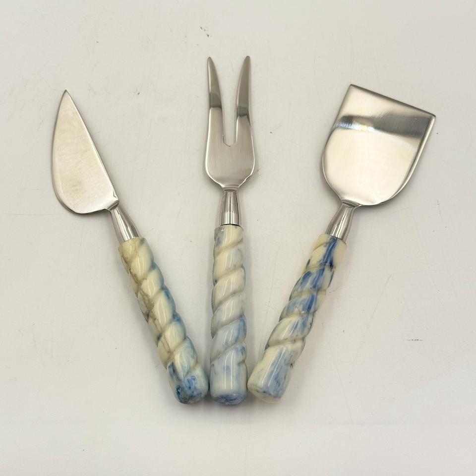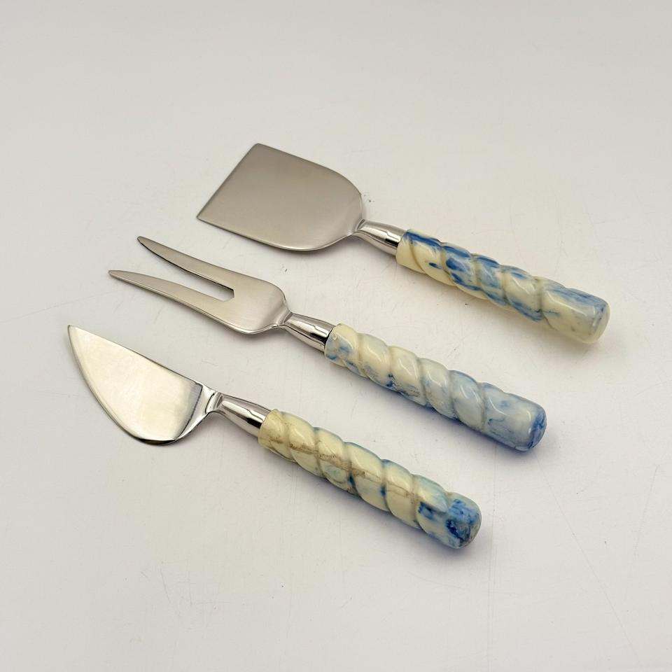 ชุดชีสคุณภาพดีแบบยั่งยืน พร้อมด้ามจับเรซิ่น สำหรับใช้ในครัวเรือน ตัดเค้ก พิซซ่า ชีส มีดหั่นชีส และส้อม พร้อมผิวขัดเงา
