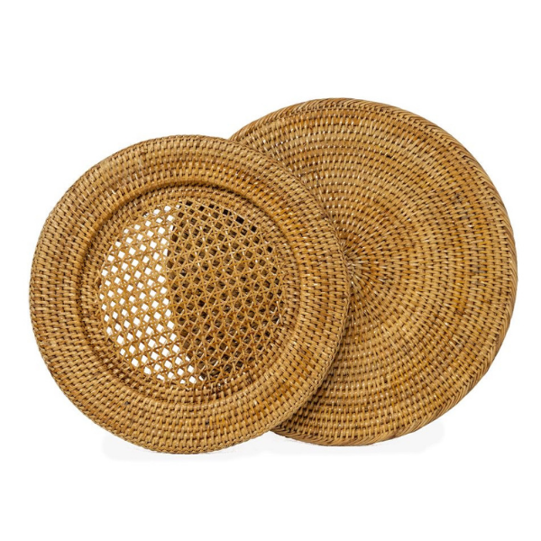 จานหวายสานทำด้วยมือจากช่างฝีมือเครื่องใช้บนโต๊ะอาหารเครื่องจักสานไม้ไผ่ทนทานเป็นมิตรต่อสิ่งแวดล้อมจากเวียดนาม