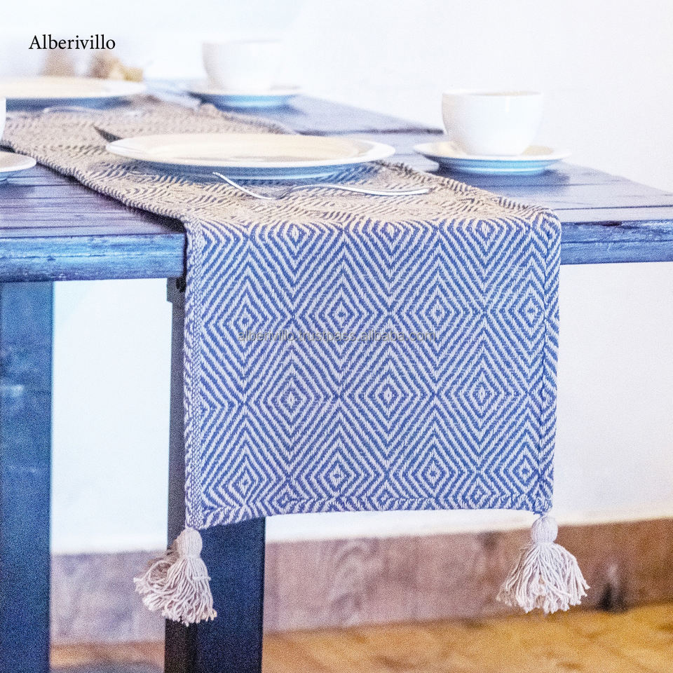 ที่ยั่งยืนสีแดงเพชรผ้าฝ้ายตารางนักวิ่งพู่ Handloom ปาร์ตี้ตกแต่งตารางนักวิ่งตกแต่งงานแต่งงาน