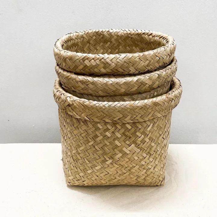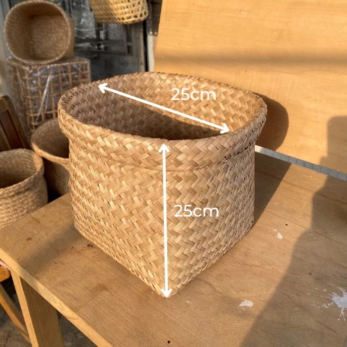 ตะกร้าหญ้าทะเลแบบยั่งยืนสำหรับการจัดเก็บพืชและบ้านเครื่องจักสานด้วยมือสำหรับซักผ้าเสื้อผ้า