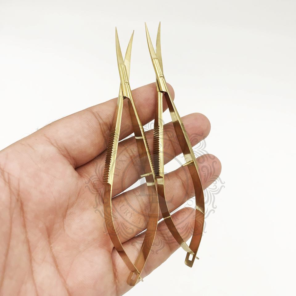 กรรไกรตัดเล็บคุณภาพสูงสำหรับต่อขนตา ปลายแหลมคม ทนทาน เคลือบพลาสมาสีทอง สำหรับงานต่อขนตาและตัดหนังกำพร้า