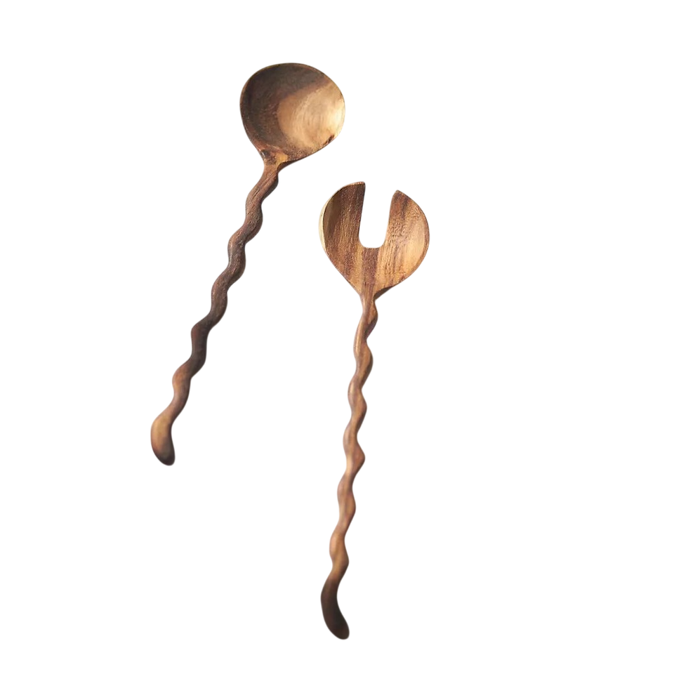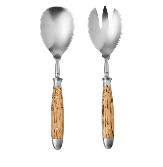 ชุดช้อนสลัดสแตนเลสอย่างดี 2 ชิ้น สีเงิน พร้อมด้ามจับทองเหลือง สำหรับใช้บนโต๊ะอาหารที่บ้านและโรงแรม