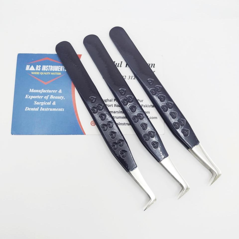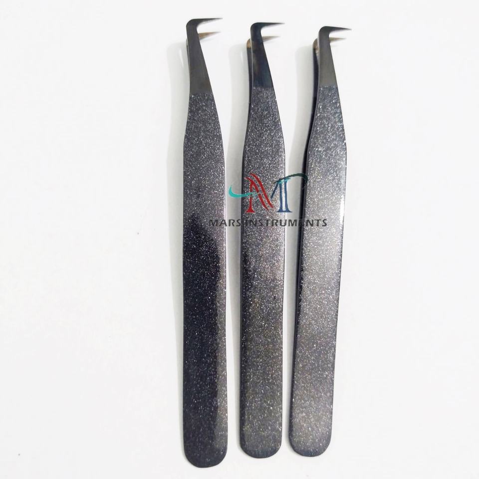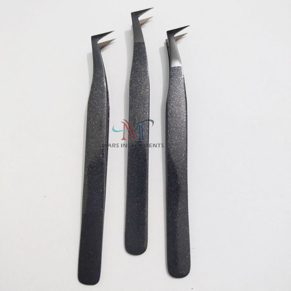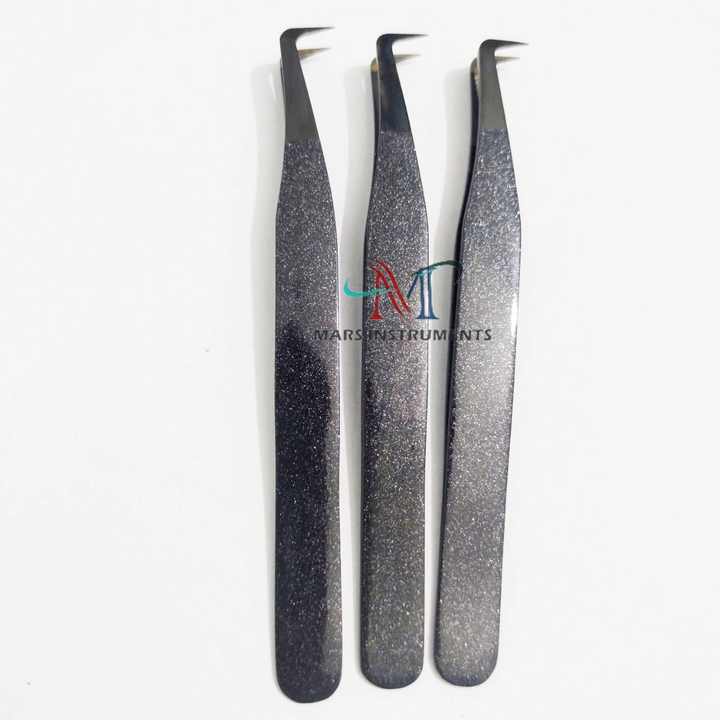แหนบต่อขนตาพลาสม่าสีดำ90องศาทำจากสแตนเลสทนทานปลายแหลมสำหรับขนตาแต่ละชิ้น
