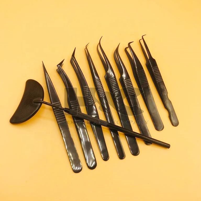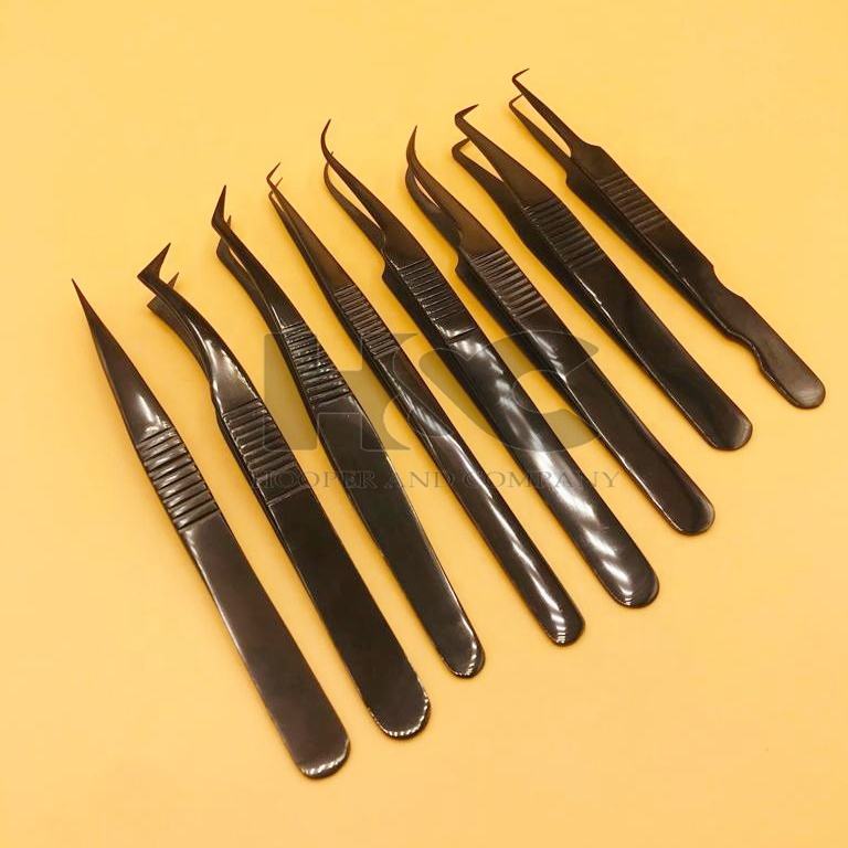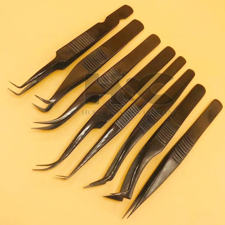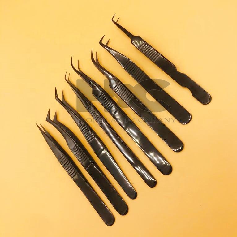 แหนบต่อขนตาสแตนเลสแบบใหม่คงทนพร้อมพลาสม่าปลายแหลมมิงค์สีดำ