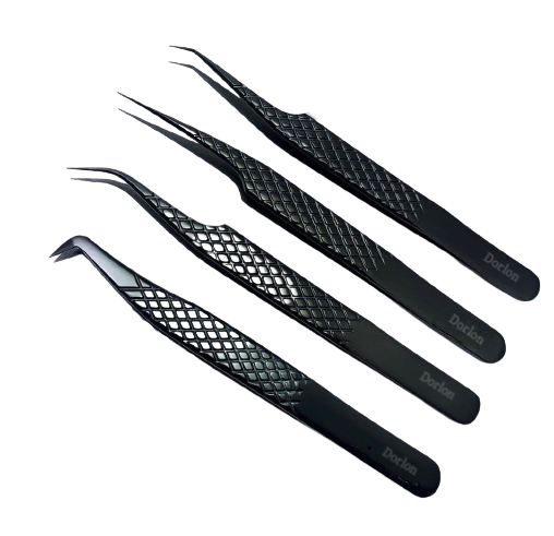 ชุดแหนบจับขนตาสแตนเลสแบบมืออาชีพสีดำสำหรับการต่อขนตา