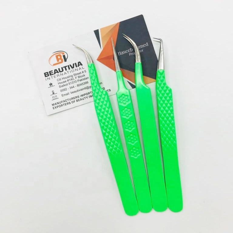 แหนบต่อขนตาทำจากสเตนเลสสตีลเคลือบสีปลายแหลมทนทานผ่านการทดสอบด้วยมือแล้วตามแบบมืออาชีพ