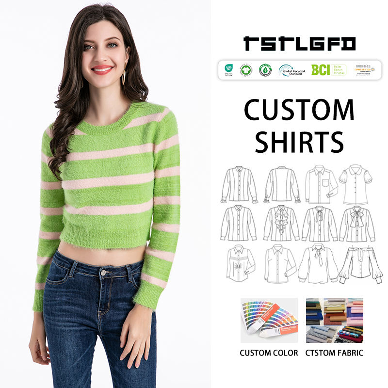 เสื้อครอปสตรีแบบยั่งยืนเข้ารูป-เส้นด้ายรีไซเคิลลายดอกไม้ระบายอากาศได้ดีเหมาะสำหรับฤดูใบไม้ผลิ/ฤดูใบไม้ร่วง-ฤดูหนาว