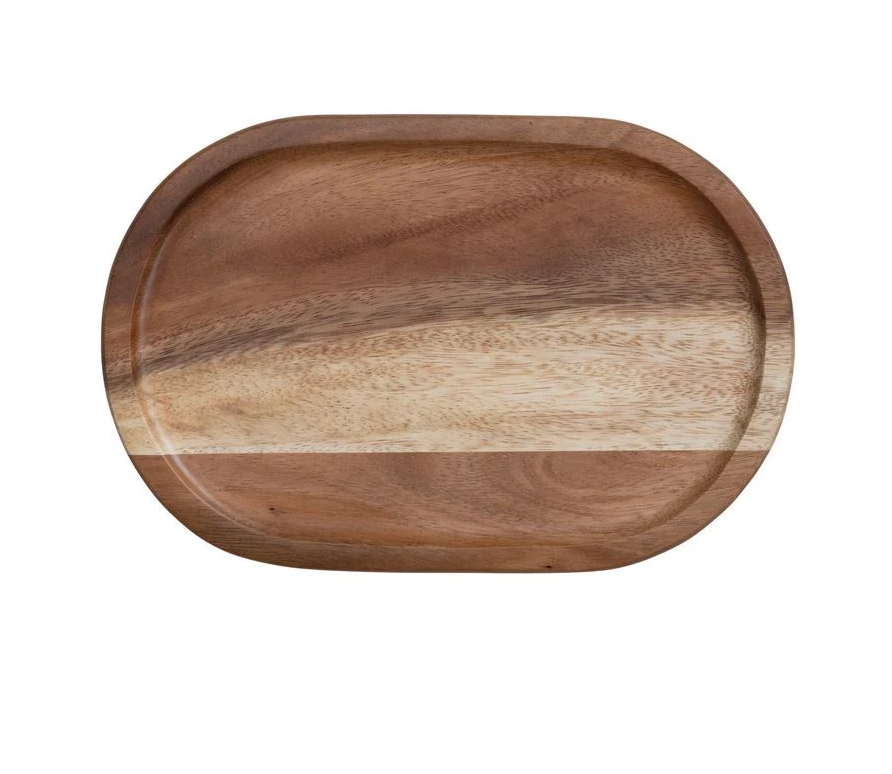 ถาดไม้ทรงสี่เหลี่ยมผืนผ้าแบบยั่งยืน พร้อมลวดลายสลัก สำหรับตกแต่งบ้านหรืองานปาร์ตี้