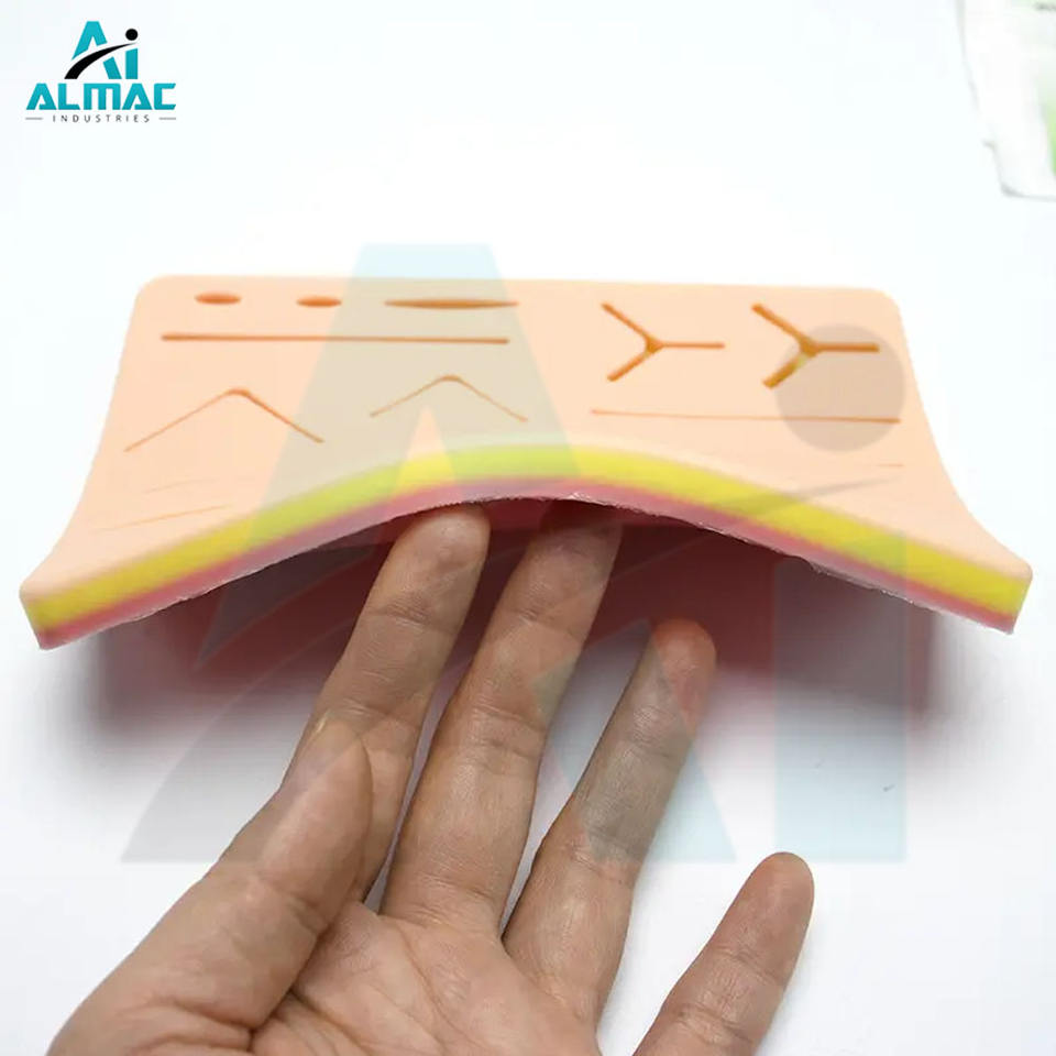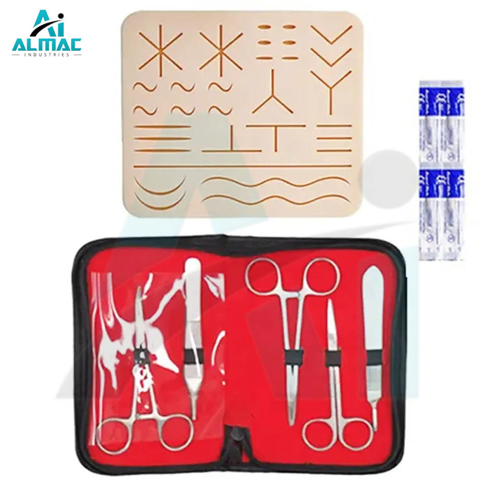 ชุดอุปกรณ์เย็บแผลสำหรับฝึกหัดเย็บแผลชุดเครื่องมือสีฟ้าแผ่นรองผิวซิลิโคนแหล่งพลังงานแบบแมนนวลสำหรับเครื่องมือการฝึกอบรม