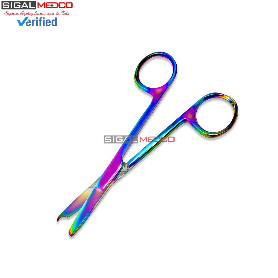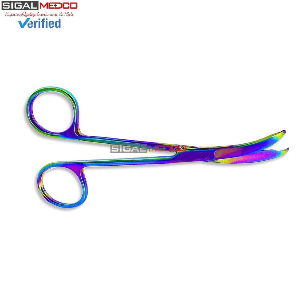กรรไกรตัดไหมเย็บแผลแบบใช้มือ หลายสีเคลือบไทเทเนียมคุณภาพพรีเมียม อุปกรณ์ผ่าตัด ปลายแหลมละเอียด CE SIGAL