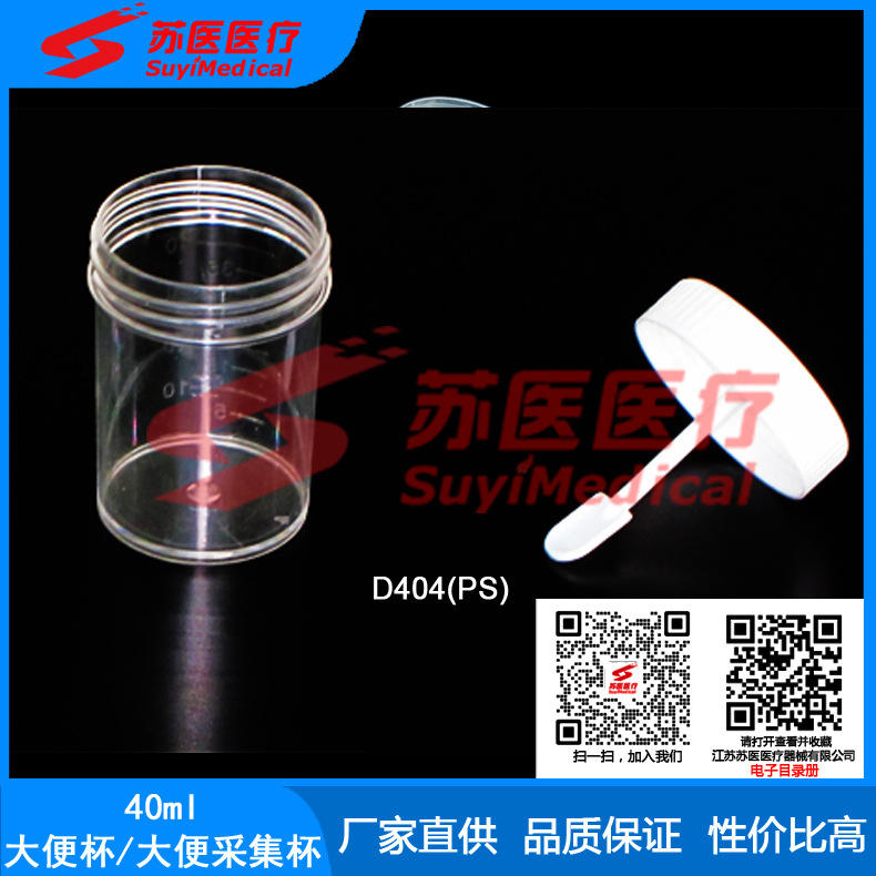ถ้วยเก็บอุจจาระแบบฝาเกลียว 40 มล. ยี่ห้อซูยี่ เมดิคอล ผลิตจากวัสดุ PP สำหรับเก็บตัวอย่าง รุ่น D404