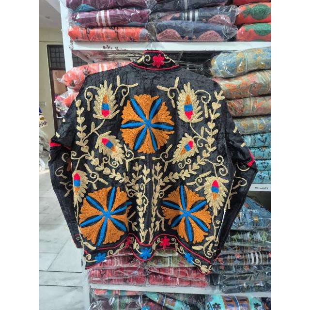 Suzani Embroidered Velvet Reversible Jacket for Women Handmade Floral Boho Vintage Coat Ethnic Festival Wear Statement Outerwear
