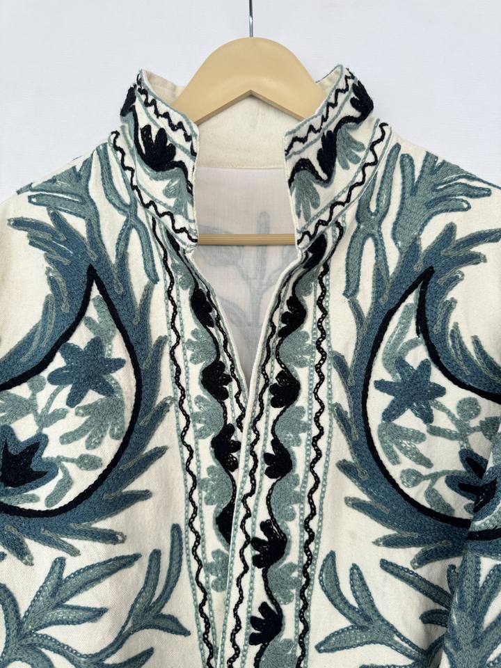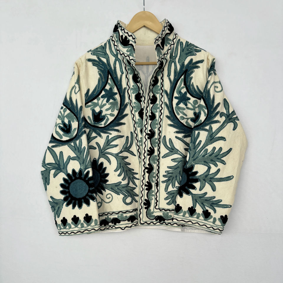 Suzani เสื้อแจ็คเก็ตปักลาย, เสื้อคลุม suzani ผ้าฝ้าย, เสื้อโค้ทแจ็คเก็ตฤดูหนาว, แจ็คเก็ตสั้น suzani, แจ็คเก็ตปักมือสำหรับ