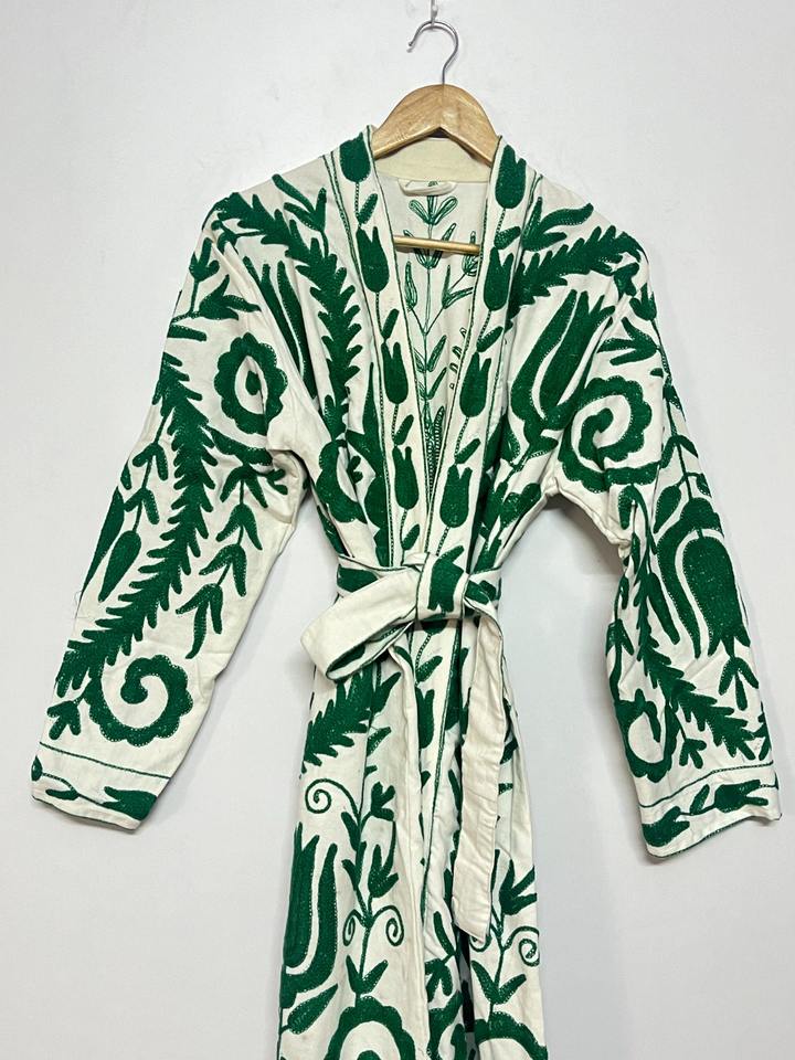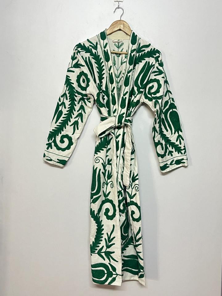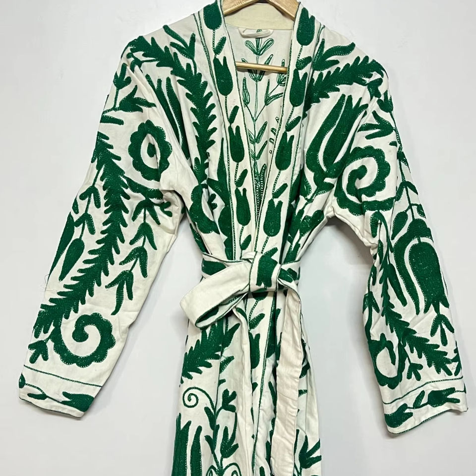 เสื้อคลุมกิโมโนยาวปักลายซูซานี ผ้าฝ้าย 100% สำหรับผู้หญิง อุ่นสบายในฤดูหนาว เป็นมิตรกับสิ่งแวดล้อม สไตล์ลำลอง