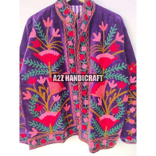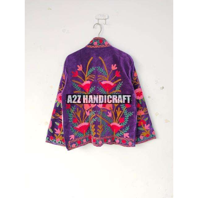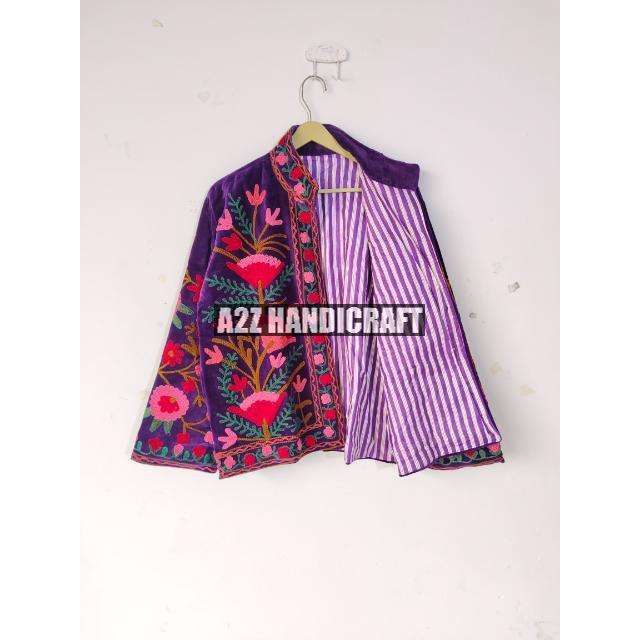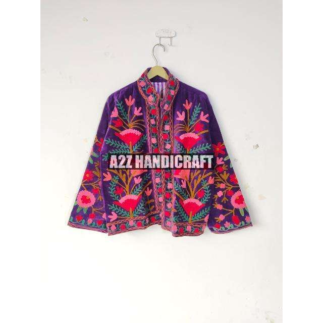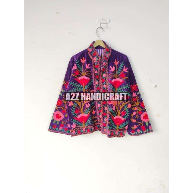 Suzani Jacket In velvet Fabric Winter Wear Handmade Summer Suzani Embroidery Thermal Womens Coat Robe Style Velvet Cotton Jacket