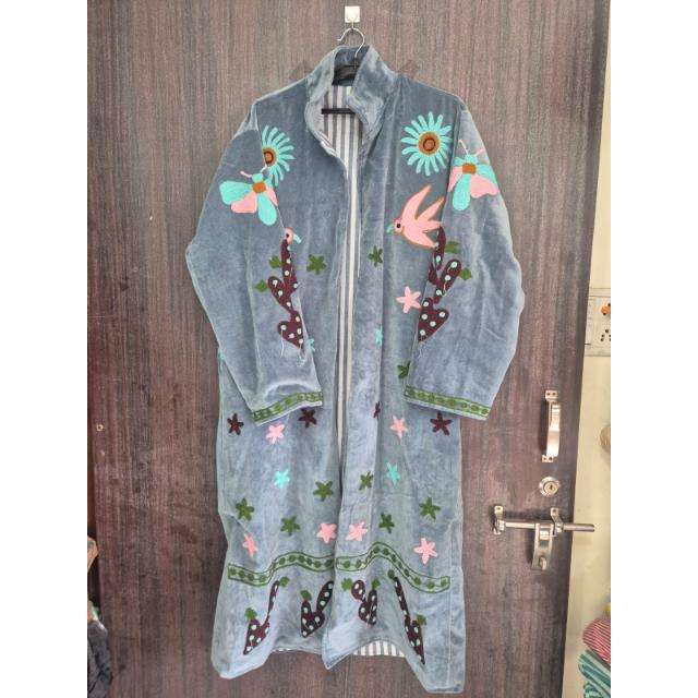 เสื้อแจ็คเก็ตผู้หญิงสไตล์โบฮีเมียนวินเทจ ปักลายดอกไม้ด้วยมือ ผ้ากำมะหยี่ทอลายซูซานี แบบสองด้าน ใช้วัสดุเป็นมิตรต่อสิ่งแวดล้อม จาก SR Exports