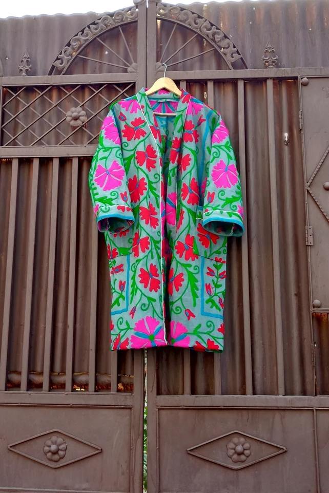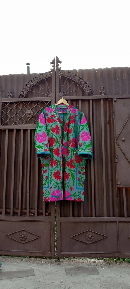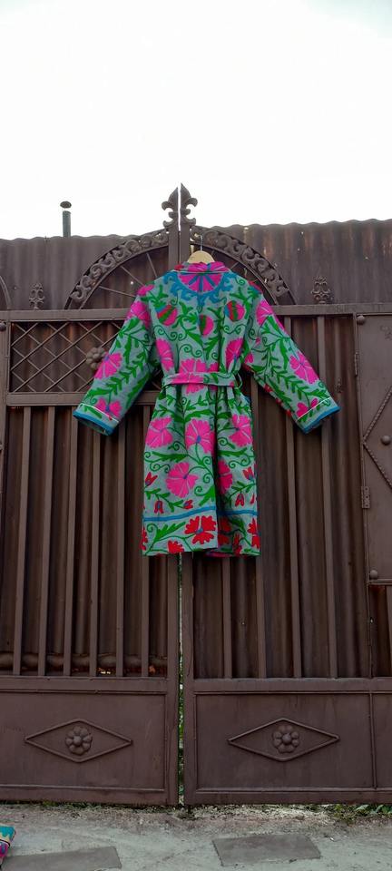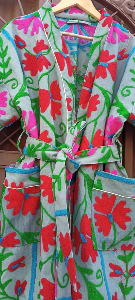 Suzani ทํางานเสื้อคลุมคันธา เสื้อคลุมอุ่น ผ้าฝ้ายแท้ ผ้าฝ้ายธรรมชาติปักมือ, เสื้อคลุมอาบน้ําปักธรรมชาติ ชุดกิโมโน