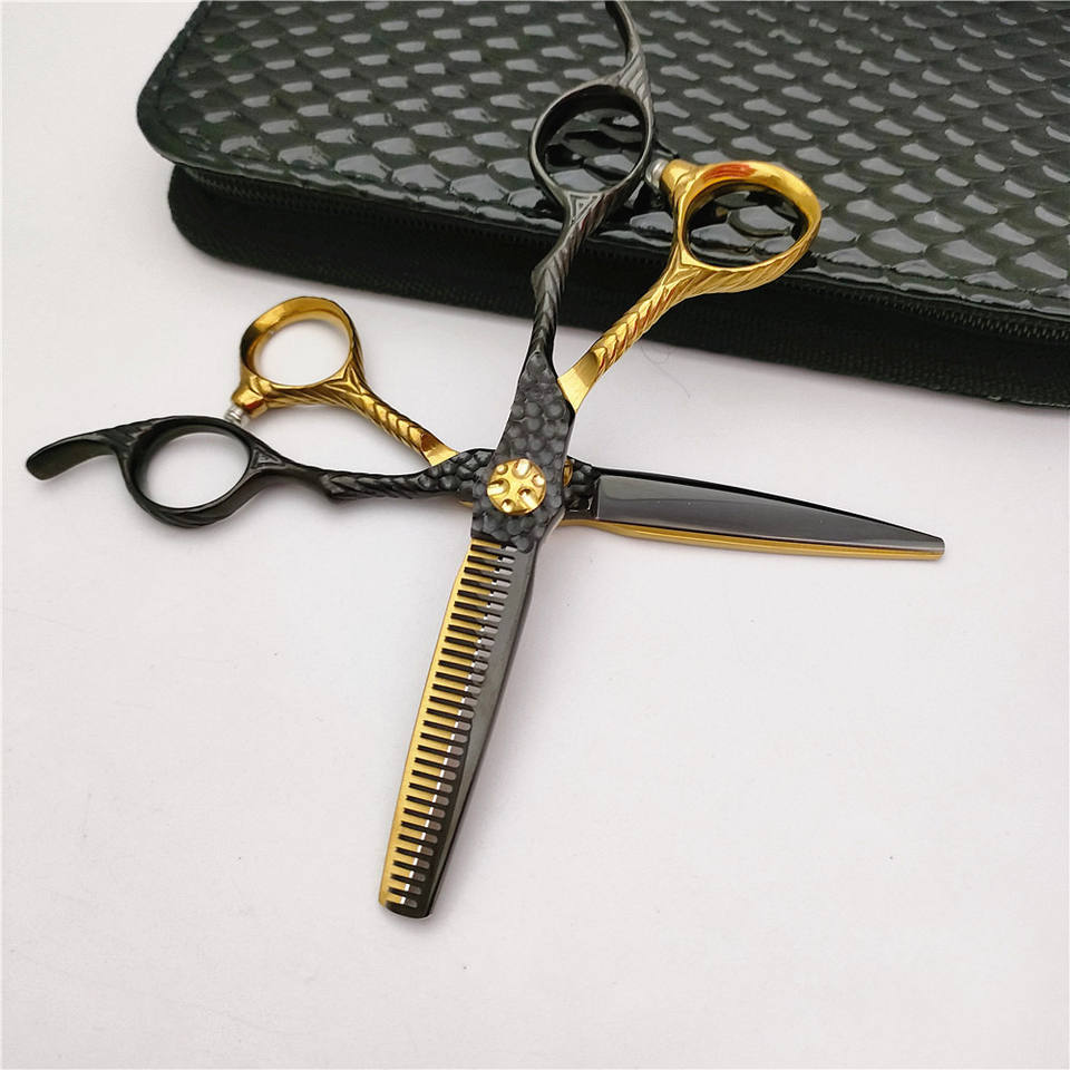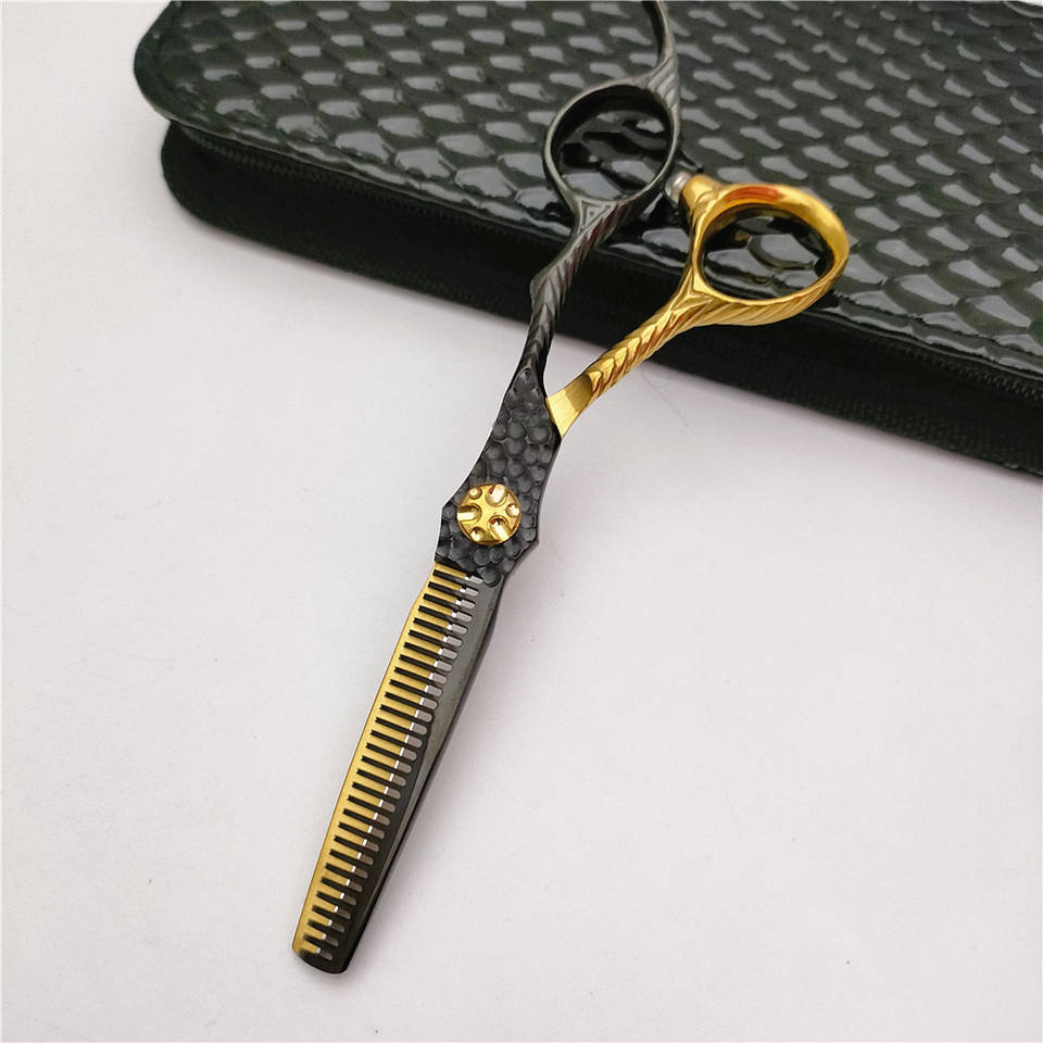 กรรไกรตัดผมซูโจว SG 62 มม. กรรไกรซอยผมสำหรับคนถนัดขวา กรรไกรตัดผมสำหรับช่างเสริมสวย ใบมีดสีทองดำ รุ่นมาตรฐาน