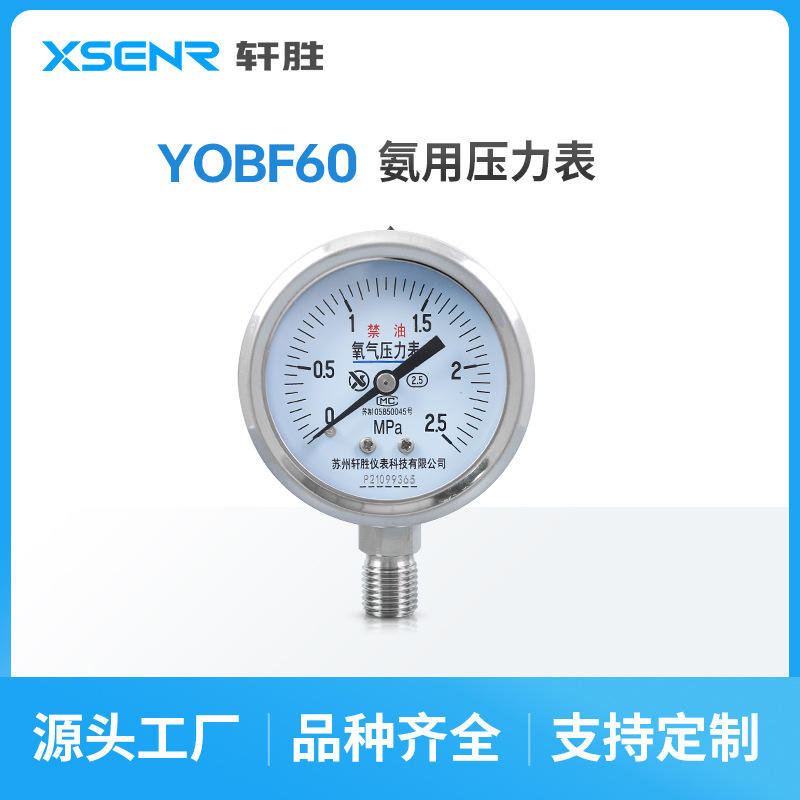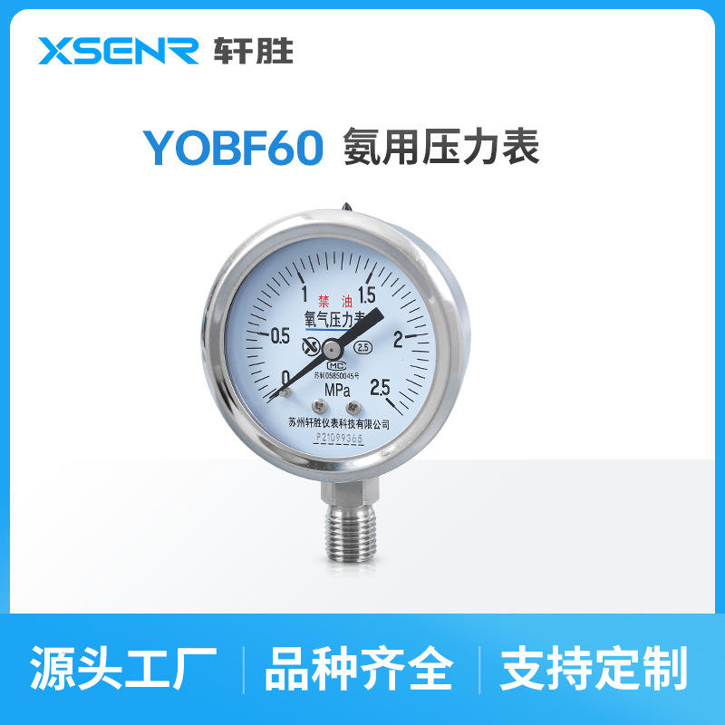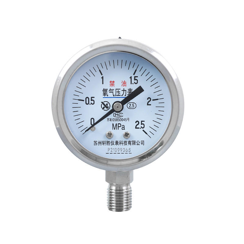 เครื่องวัดความดันออกซิเจนซูโจวซวนเซิง 2.5Mpa สแตนเลสแบบอนาล็อกพร้อมการเชื่อมต่อแบบเกลียวสำหรับก๊าซความบริสุทธิ์สูง