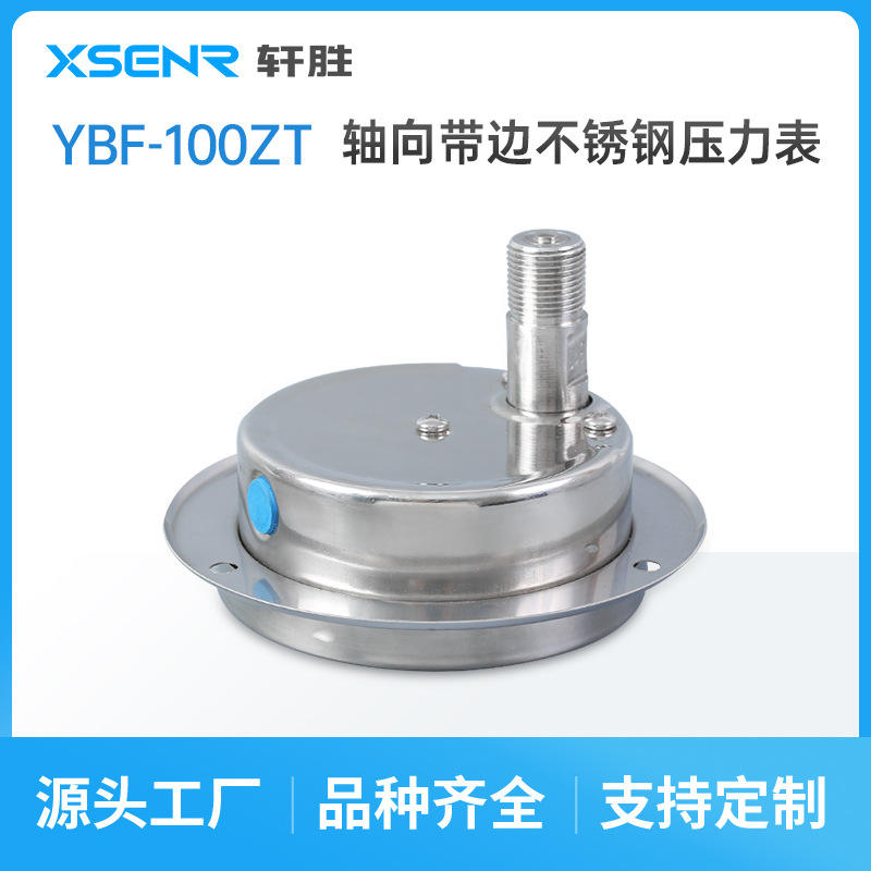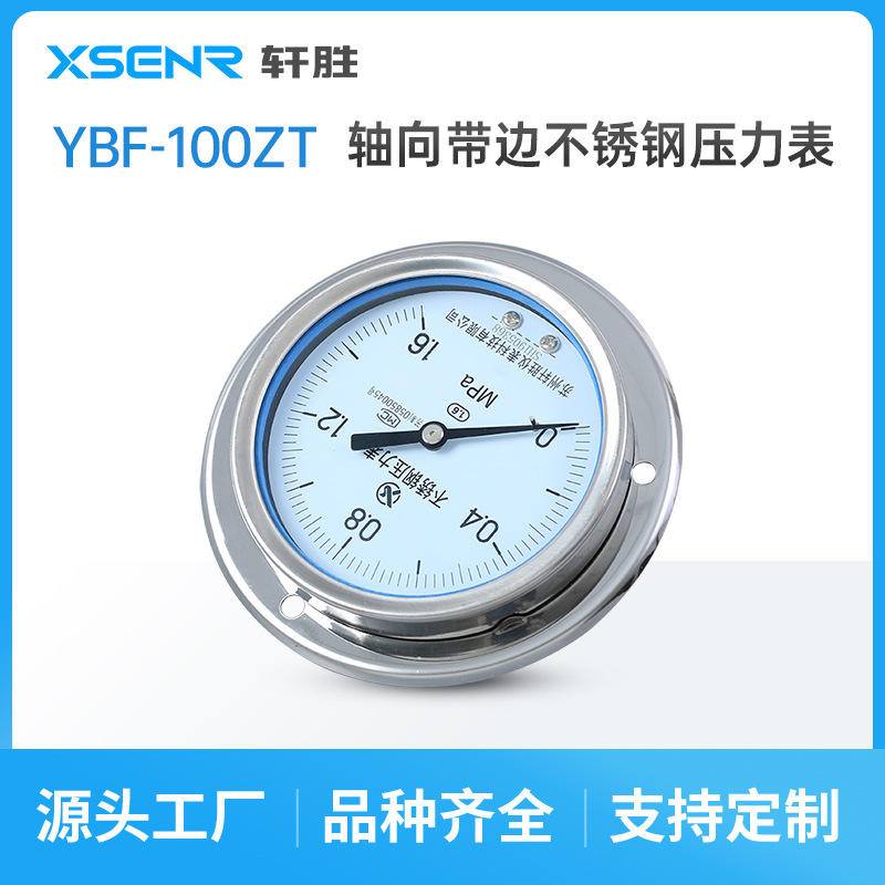 เกจวัดแรงดันสแตนเลสซูโจวซวนเซิง ขนาด 100 มม. แบบอนาล็อก ติดตั้งบนแผง YBF100ZT แบบเกลียว