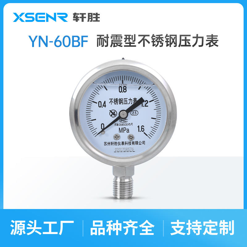 ซูโจวซวนเซิงเกจวัดแรงดันสแตนเลส 60 มม. แบบอนาล็อก 0 ถึง 1.6Mpa การเชื่อมต่อแบบเกลียว YN60BF