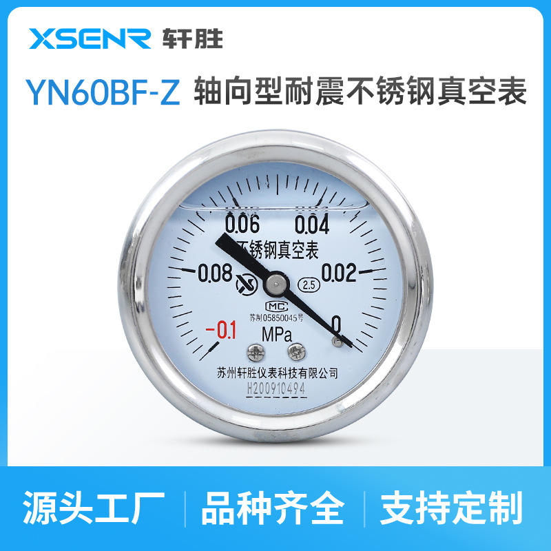 เกจวัดสุญญากาศสแตนเลสซูโจวซวนเซิง ขนาด 60 มม. -0.1 ถึง 0 เมกะปาสคาล แบบติดตั้งแกน สำหรับใช้งานในอุตสาหกรรม