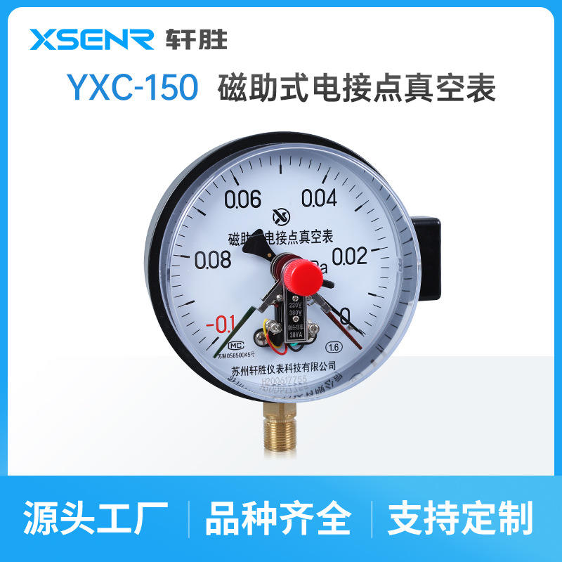 เกจวัดแรงดันแม่เหล็กสุญญากาศ Suzhou Xuan Sheng YXC-150 ขนาด 150 มม. -0.1 ถึง 0 MPa แบบเกลียว
